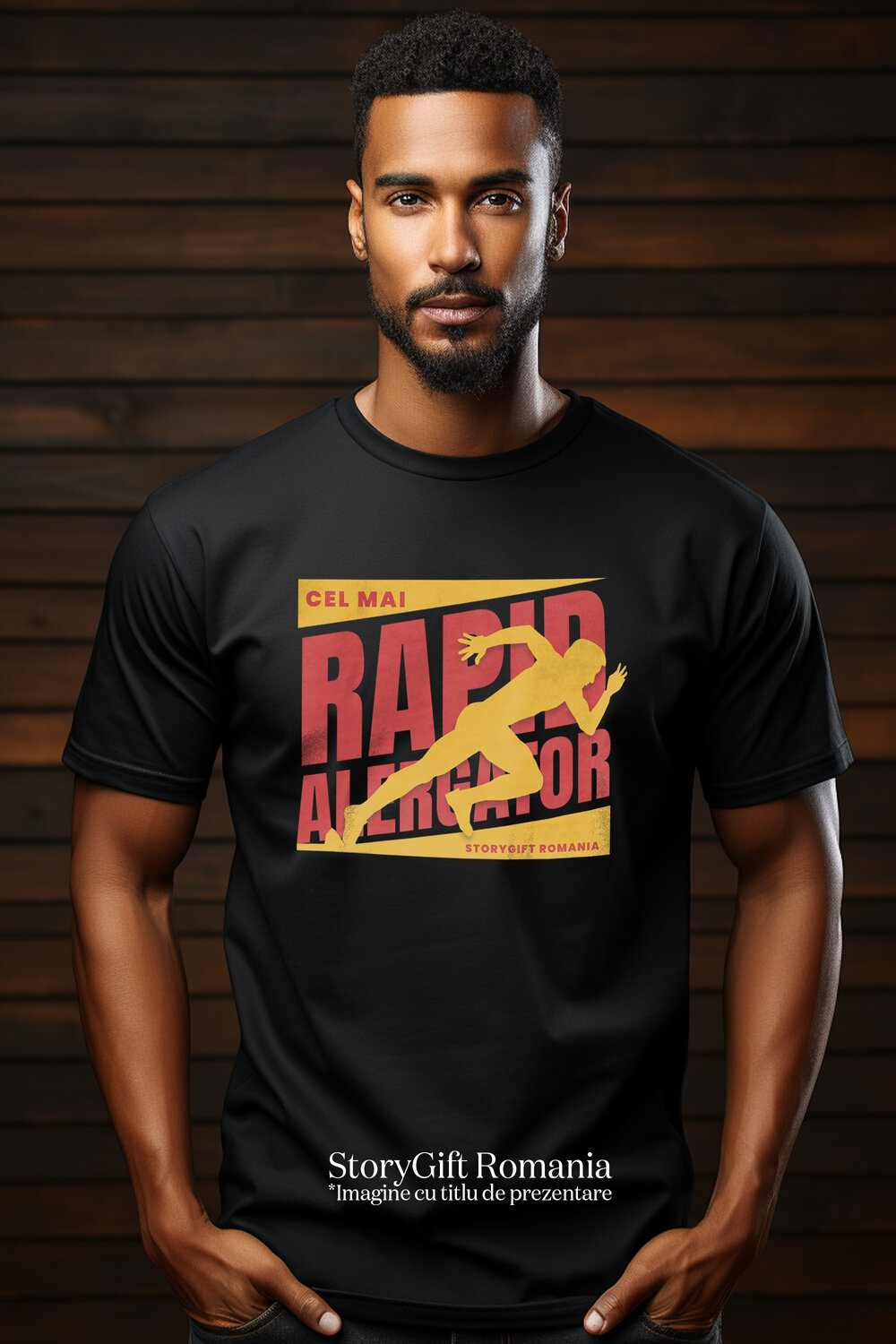 Tricou Barbati cu Silueta umana Alergare Maraton Sport Copii Viteza Rapid Alergator cu imprimeu pe Fata, 100% Bumbac, Negru, L