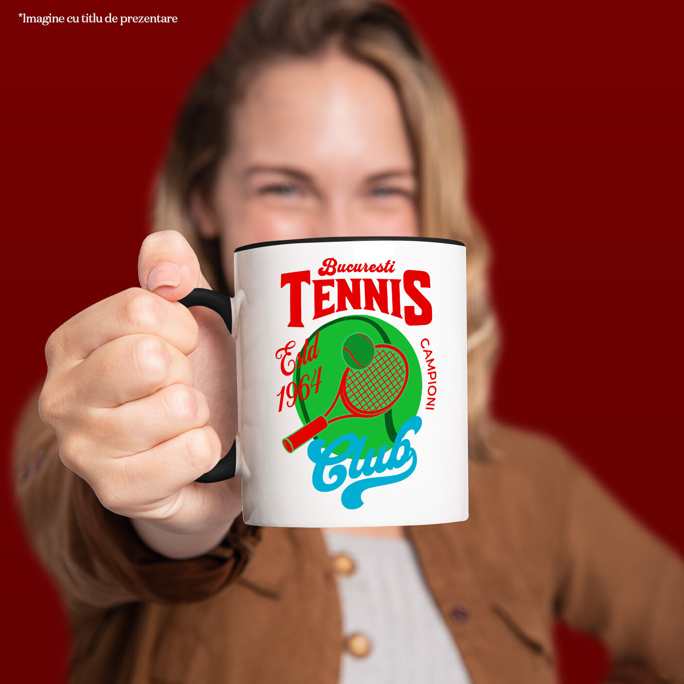 Cana Personalizata cu Iubitorii DE Sport Tennis Racheta Si Minge Campioni Sport Motivational, Ceramica, 330ML, cu Maner Negru