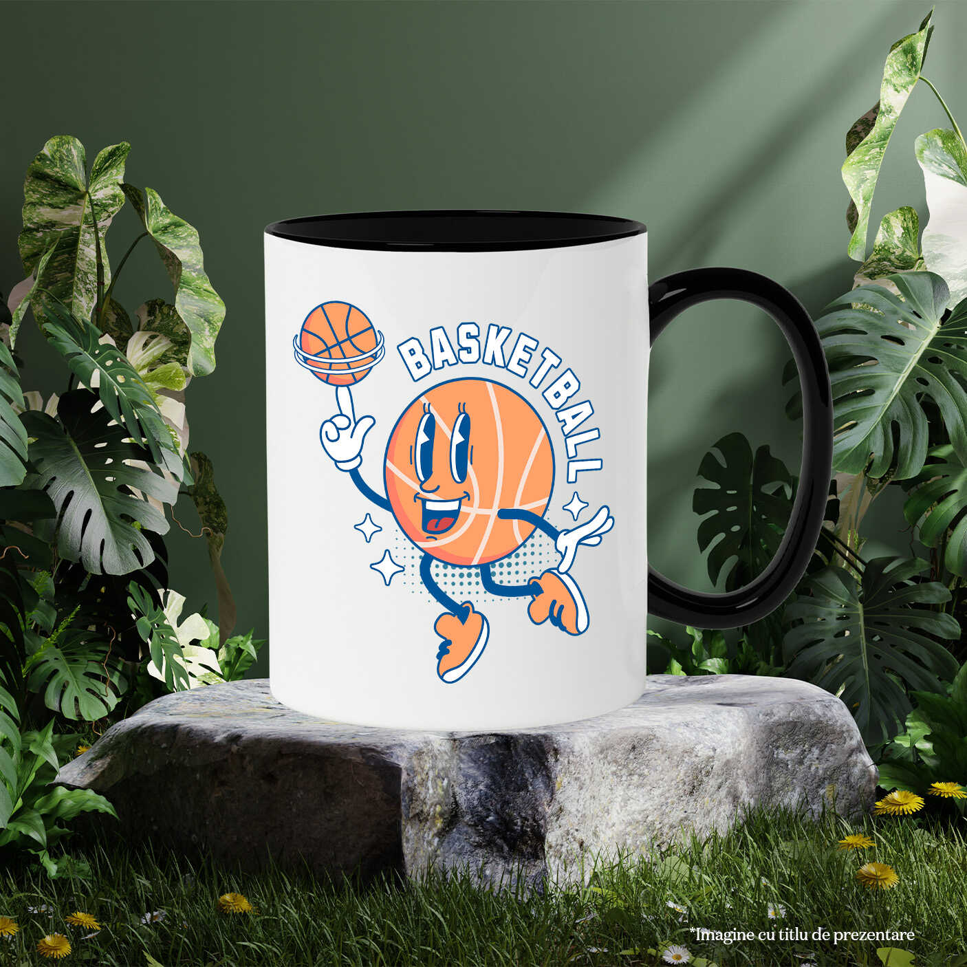 Cana Personalizata cu Minge De Baschet Animata Pe Teren Sport Iubitorii De Basketball Echipa Sanatate Motivational, Ceramica, 330ML, cu Maner Negru