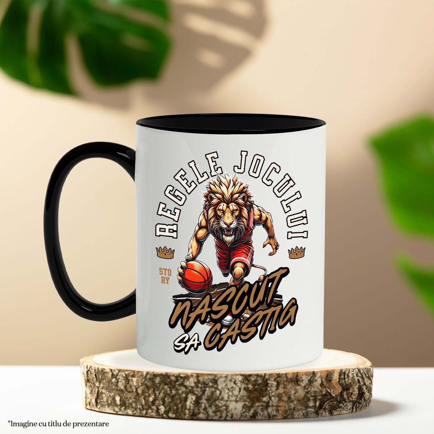 Cana Personalizata cu Regele Leu Furios Jucator de Bascketball Sport Meci , Ceramica, 330ML, cu Maner Negru