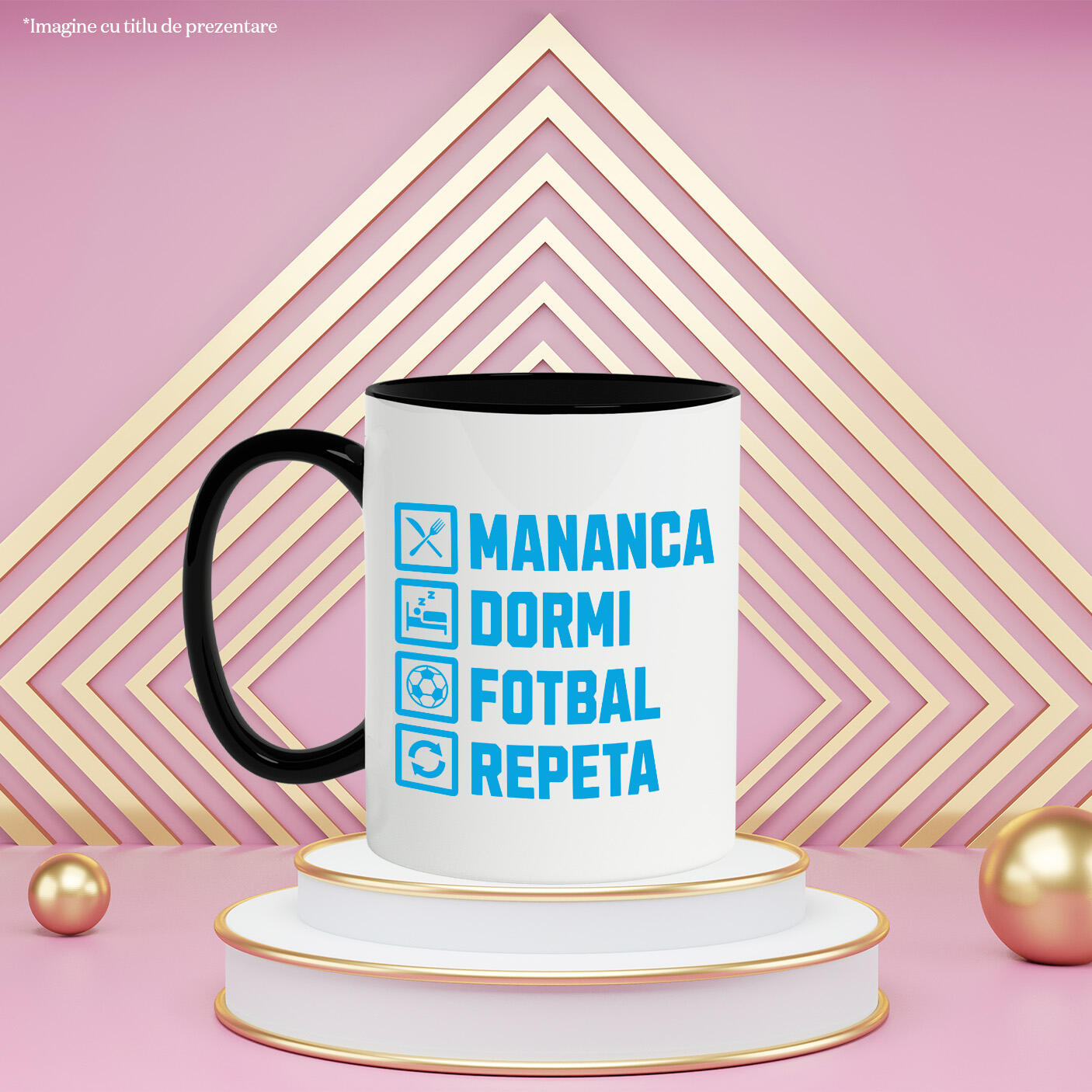 Cana Personalizata cu Rutina Zilnica Sport Iubitorii De Fotbal Meci In Echipa Sanatate Mananca Dormi Fotbal Repeta, Ceramica, 330ML, cu Maner Negru