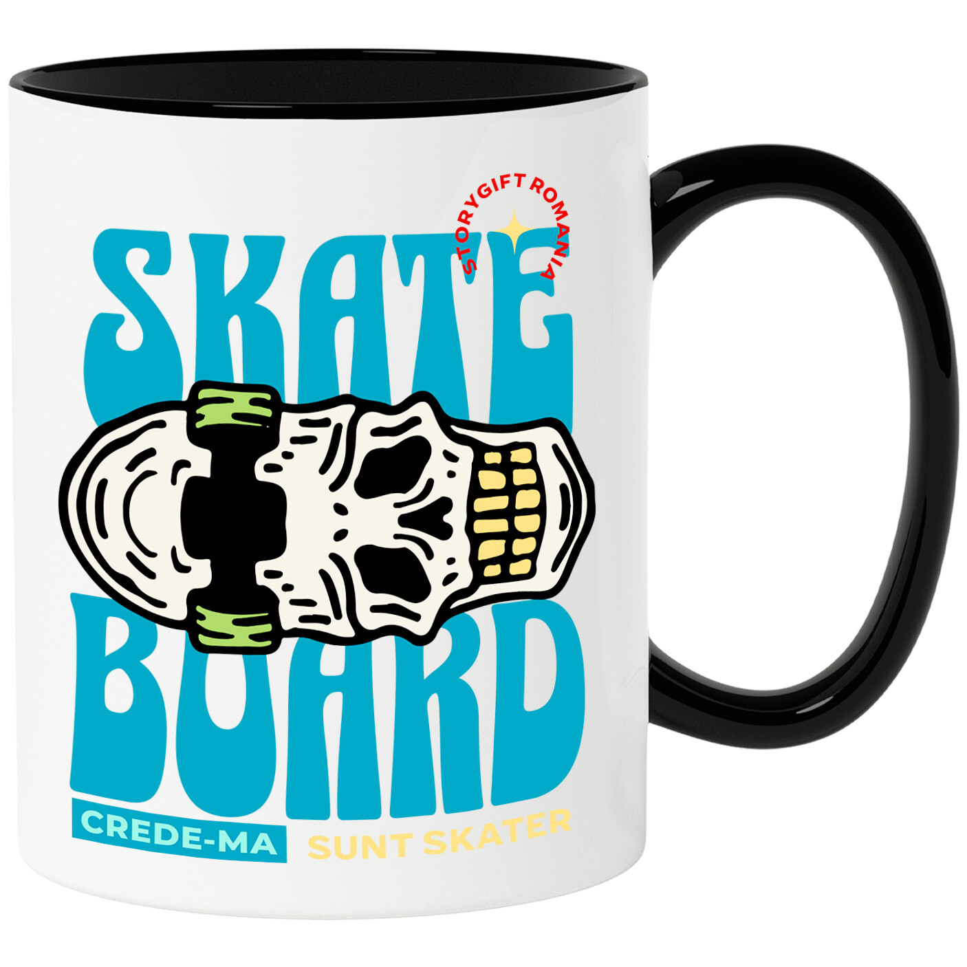 Cana Personalizata cu Skatebpoard Placa Cu Craniu Uman Iubitorii De Sport si Adrenalina , Ceramica, 330ML, cu Maner Negru