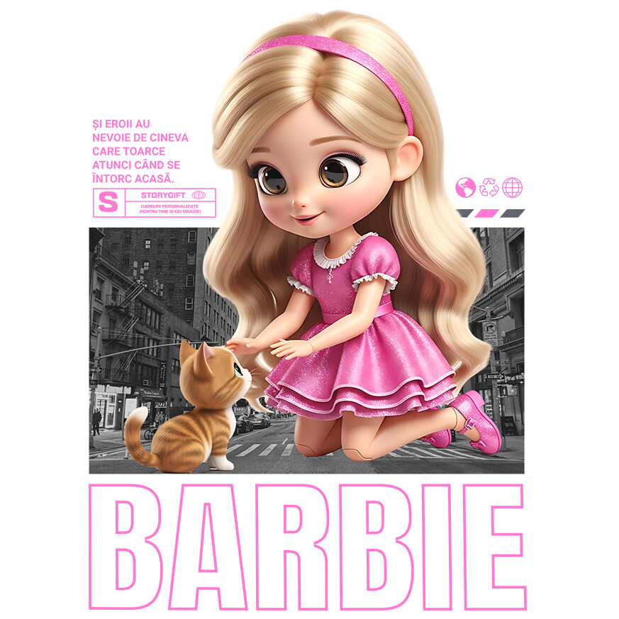Sticker Cu Barbie si Pisicuta – Echipa Fermecata Adeziv, Vinyl, cu Margini Albe, PVC Vinyl