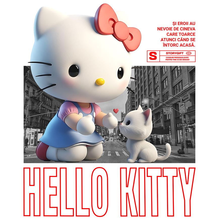 Sticker Cu Hello Kitty si Pisicuta – Misiune Speciala Adeziv, Vinyl, cu Margini Albe, PVC Vinyl