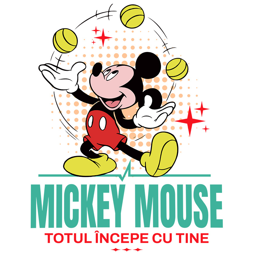 Sticker Cu Mickey si spectacolul mingilor Adeziv, Vinyl, cu Margini Albe, PVC Vinyl