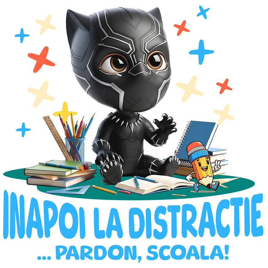 Sticker Cu Pantera Neagra – Inceput De Scoala Vesel Adeziv, Vinyl, cu Margini Albe, PVC Vinyl