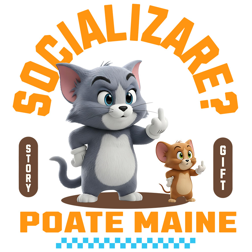 Sticker Cu Tom si Jerry: Aventuri Pe Skateboard , Degetul Mijlociu, Socializare? Poate maine, Anti-social Adeziv, Vinyl, cu Margini Albe, PVC Vinyl