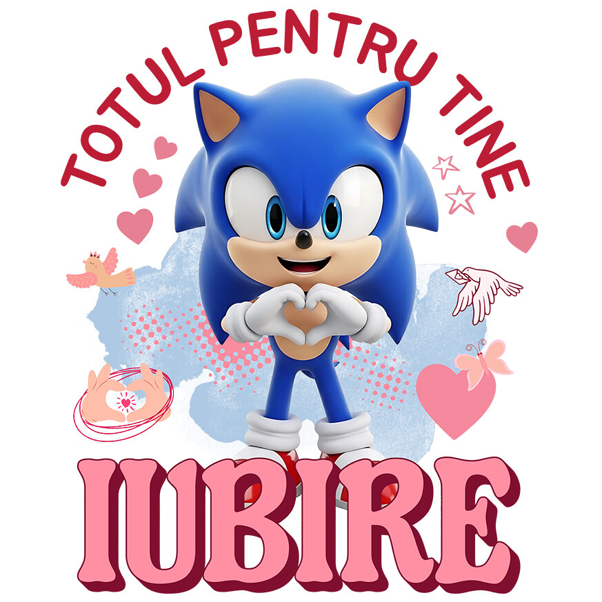 Sticker Cu Sonic, Iubire, Dragoste, Afectiune, Inima Adeziv, Vinyl, cu Margini Albe, PVC Vinyl