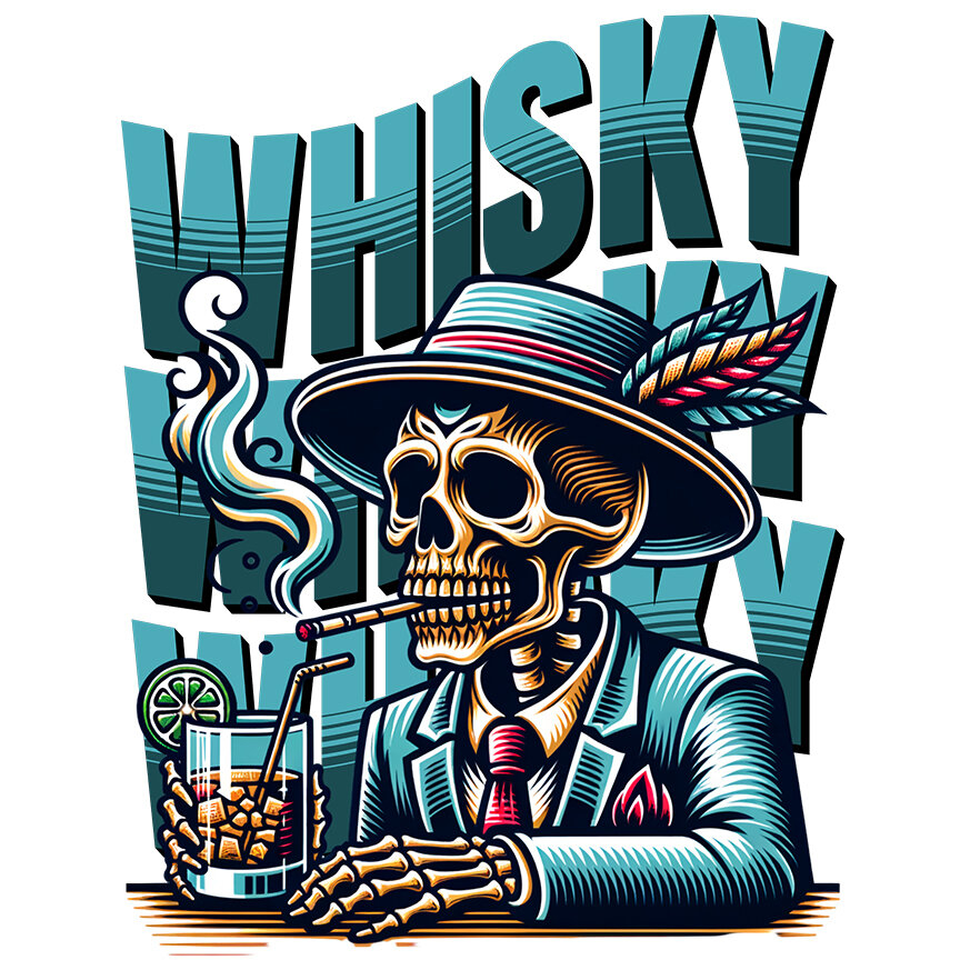 Sticker Personalizat cu Craniu Uman Schelete la masa In Costum stil mafiot Cu Palarie Si Tigara cu Margini Albe, PVC Vinyl 10 cm