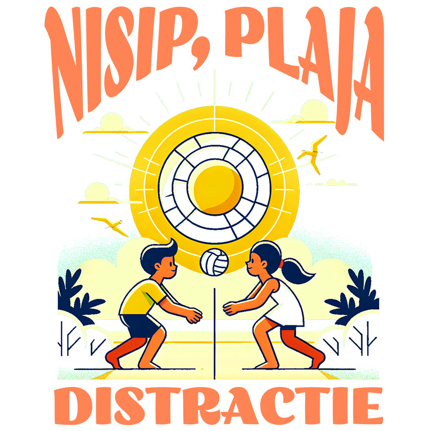 Sticker Personalizat cu Jucatori De Volei Plaja Tropocala Nisip Plaja, Distractie, Minge cu Margini Albe, PVC Vinyl 10 cm