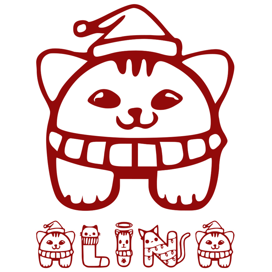 Sticker Adeziv Iubitorii De Craciun, Caine Cu Fular Si Caciula, Text Nume Personalizat, Culoare Rosu , cu Margini Albe, PVC Vinyl, 10 CM