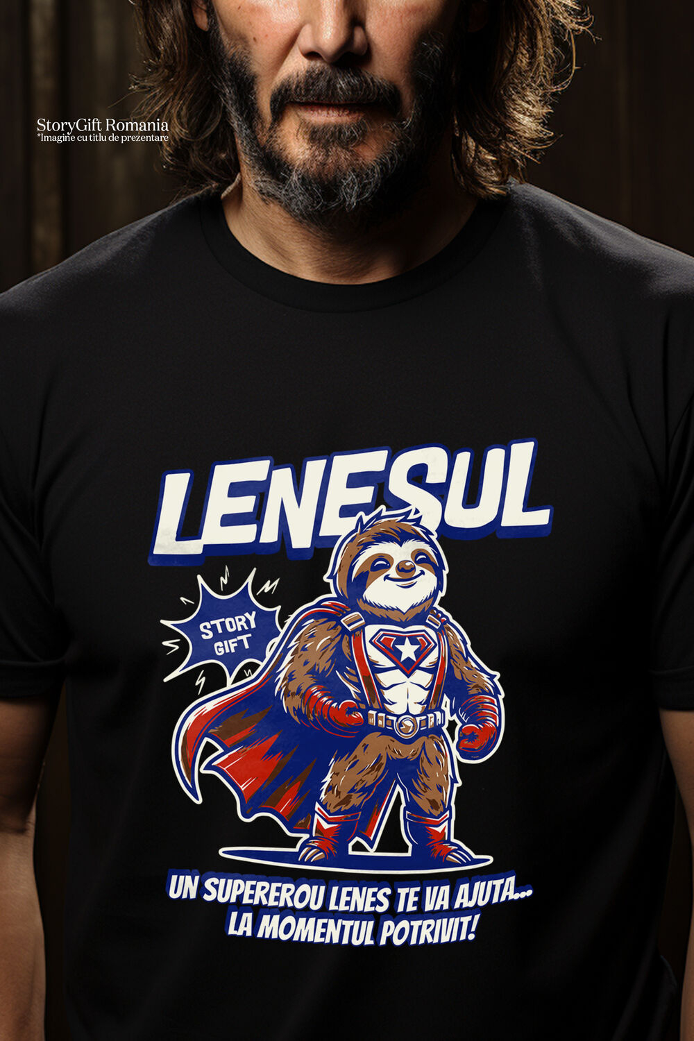 Tricou Barbati cu Animal Lenes Mandru Cu Pelerina DE Super Erou Capitanul America cu imprimeu pe Fata, 100% Bumbac, Negru, L