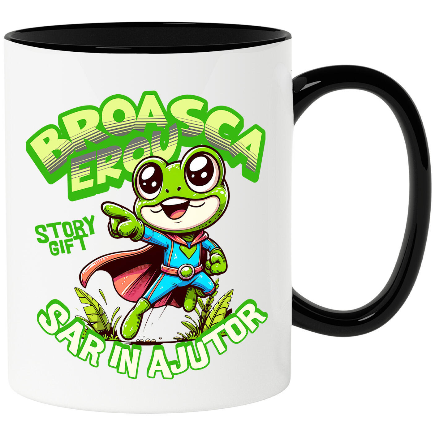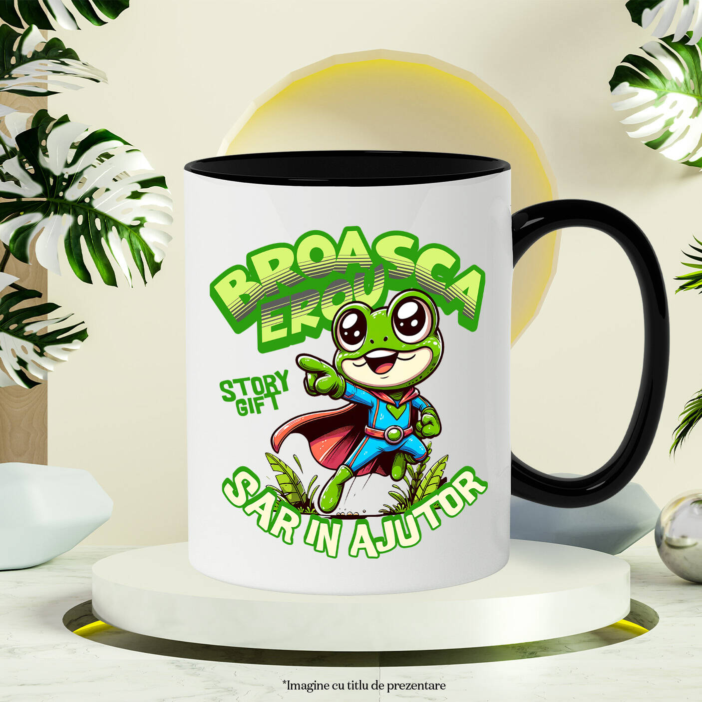 Cana Personalizata cu Broasca Testoasa Cu pelerina Si Costum De Super erou Copii Desene Animate, Ceramica, 330ML, cu Maner Negru
