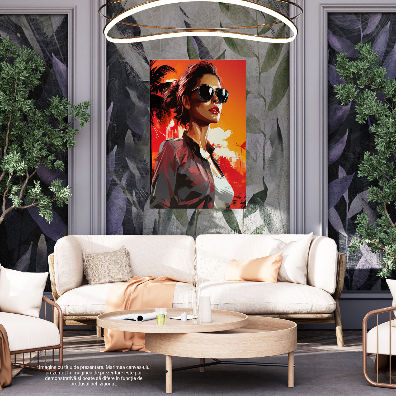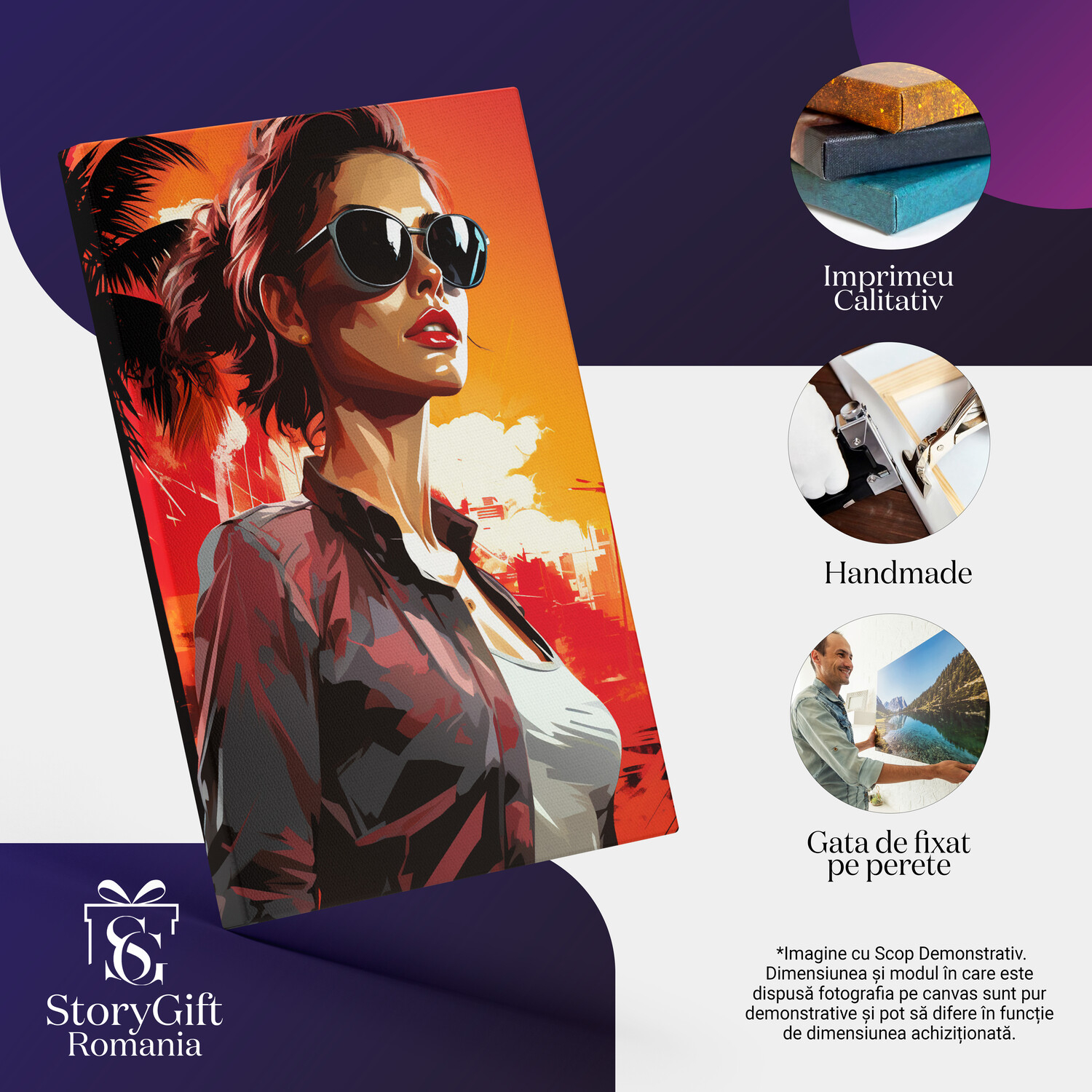 Tablou Canvas: Ilustratie cu o fata cu ochelari de soare - caldura vara Pictura Digitala - Tablou Canvas Signature de la StoryGift Romania