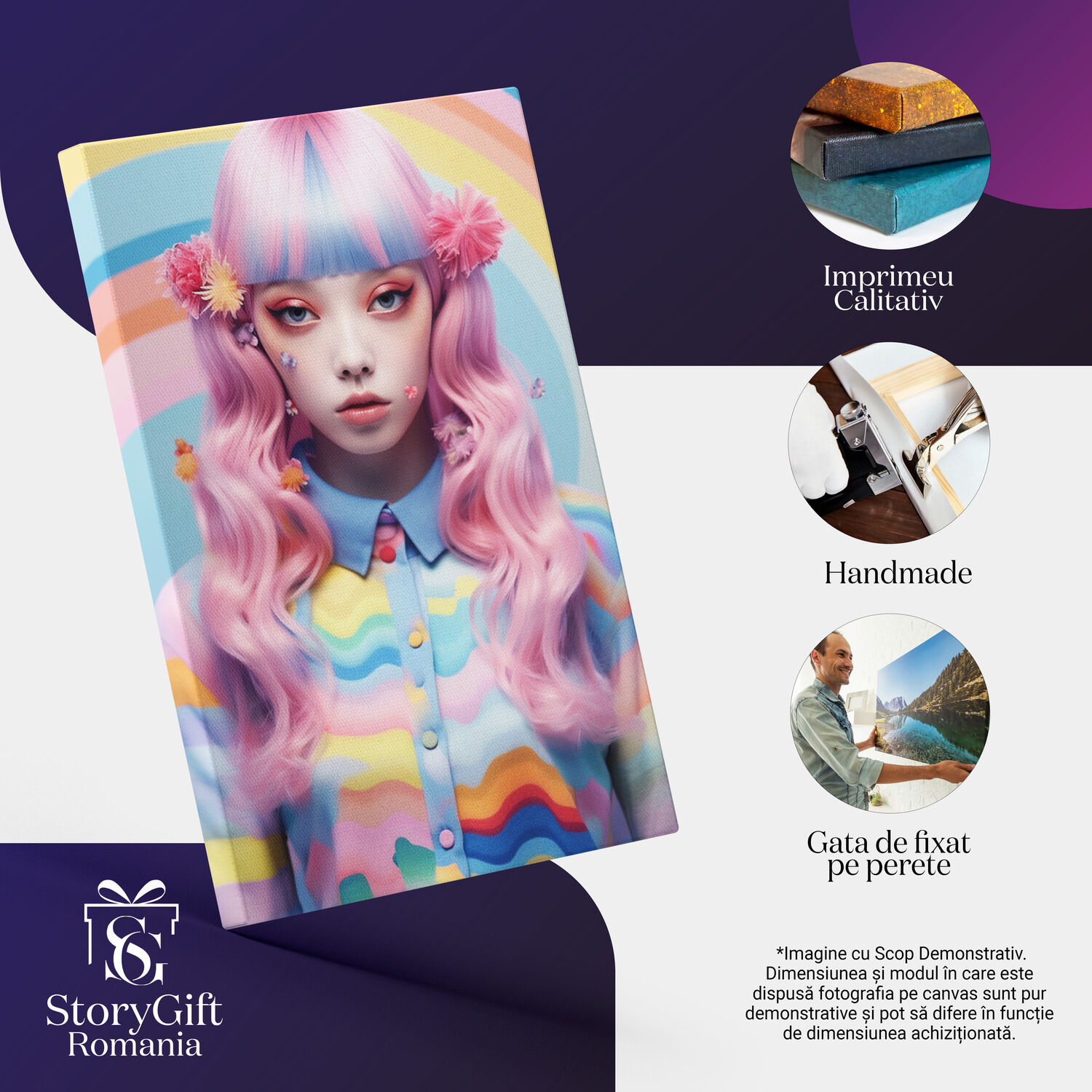 Tablou Canvas: O fata cu par lung la camasa - diverse culori par roz Pictura Digitala - Tablou Canvas Signature de la StoryGift Romania