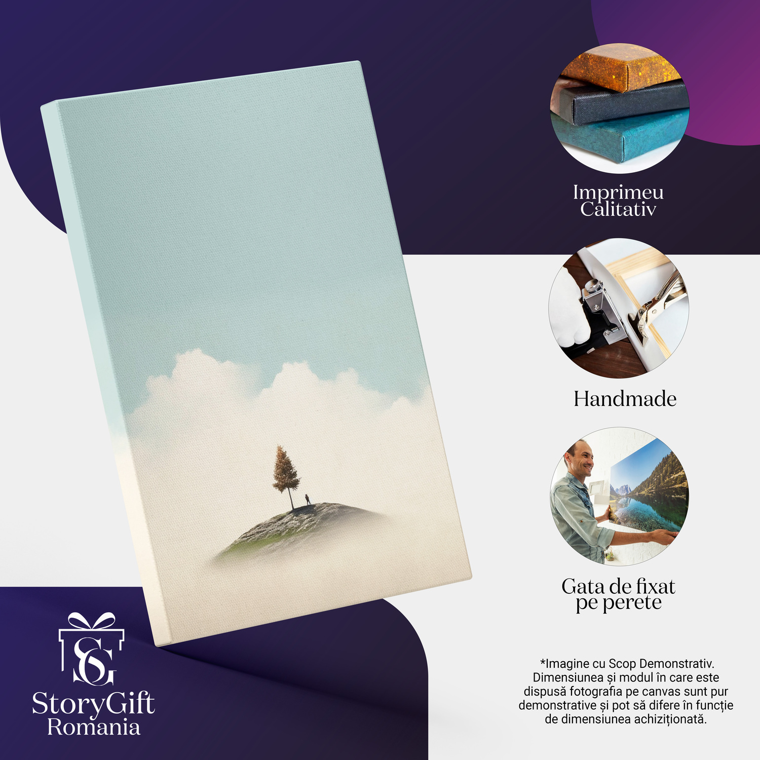 Notă importantă: Precizăm că imaginile de pe site au scop ilustrativ. Detaliile reale ale produsului pot prezenta diferențe minore față de reprezentările digitale, datorită variațiilor de culoare, mărimea tabloului și rezoluția dispozitivelor. Disponibilitatea în diverse dimensiuni ne permite să satisfacem nevoile dvs. specifice; pentru a vă asigura de alegerea potrivită, recomandăm măsurarea atentă a spațiului alocat.