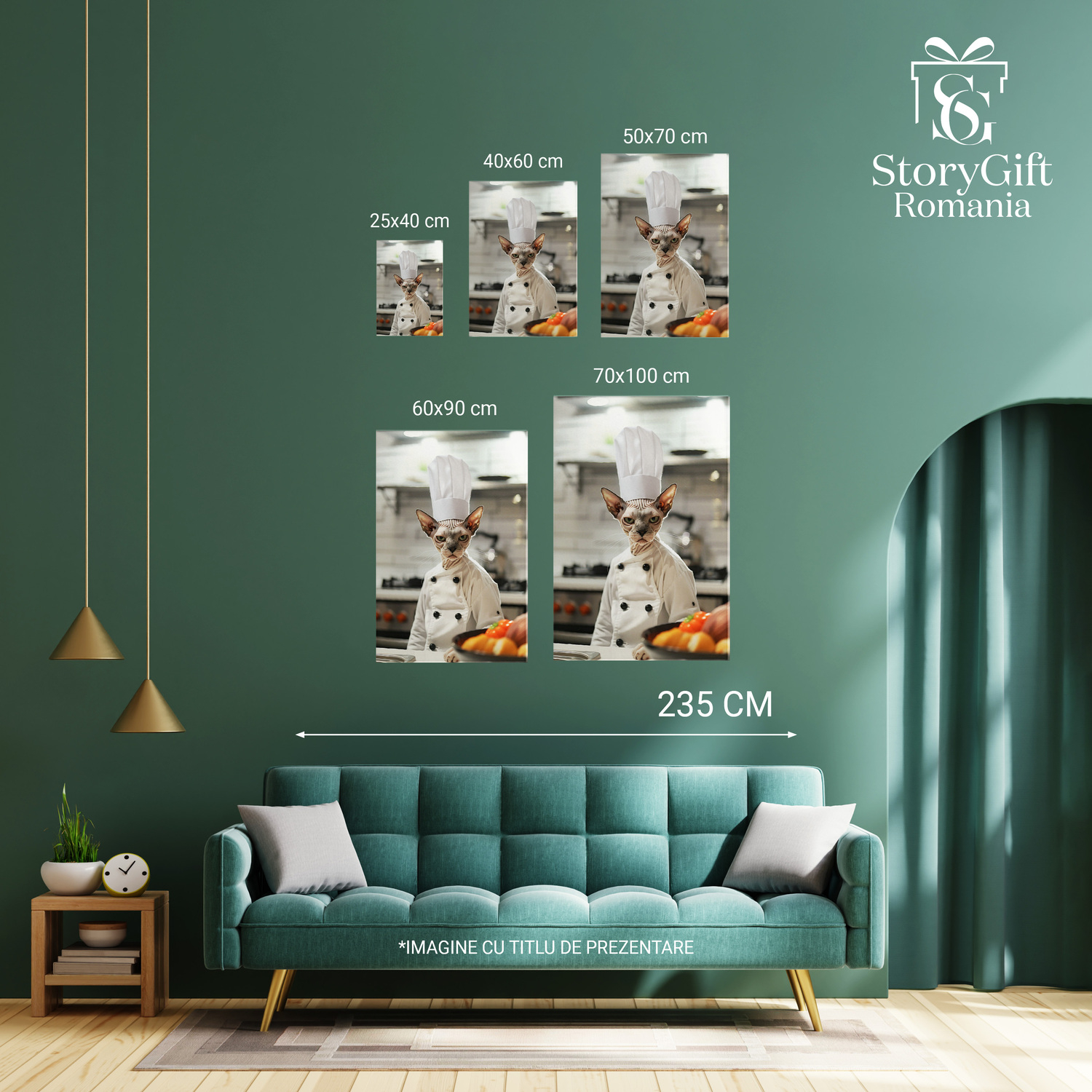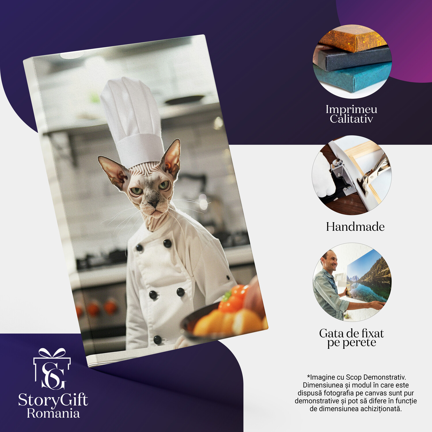 Tablou Canvas Ora Mesei Chef Bucatar Felin Devon Rex Gateste Legume Delicioase , Pictura Digitala - Tablou Canvas Signature de la StoryGift Romania