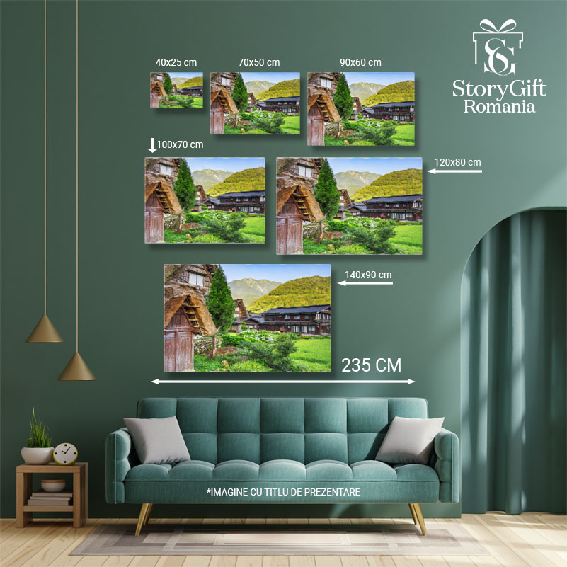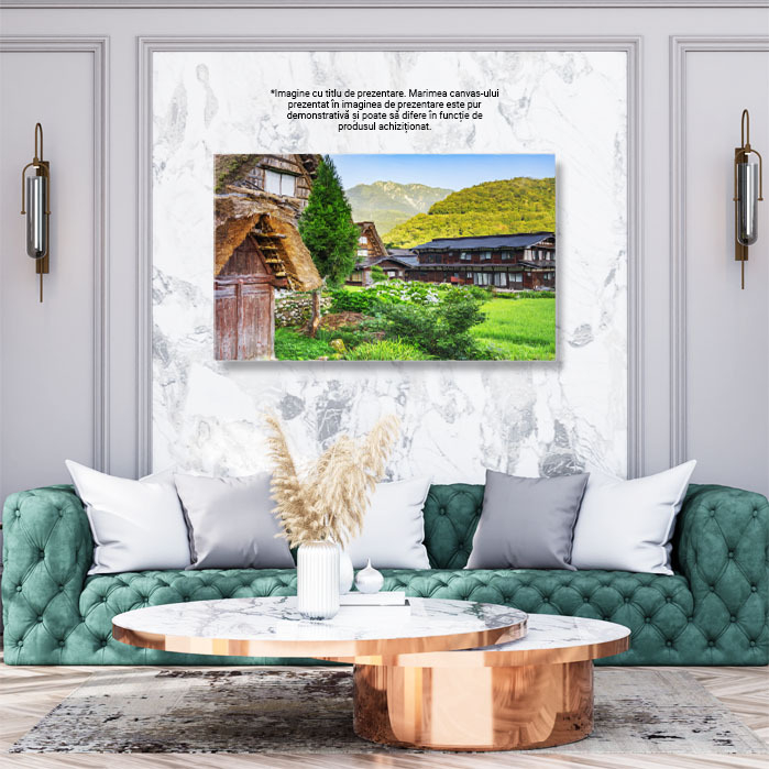 Tablou Canvas - Vara in Shirakawa: summertime, rice, rural, gifu, gassho, japanese 40x25CM
