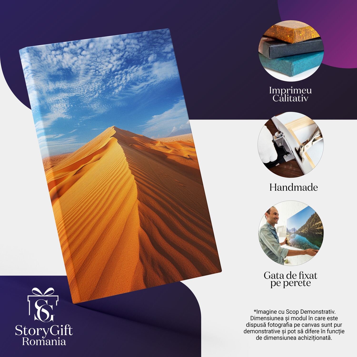 Tablou Canvas: Dune de Nisip in Desertul Serpuit Intinderea Infinita si Mirajul Norilor Senini Pictura Digitala - Tablou Canvas Signature de la StoryGift Romania