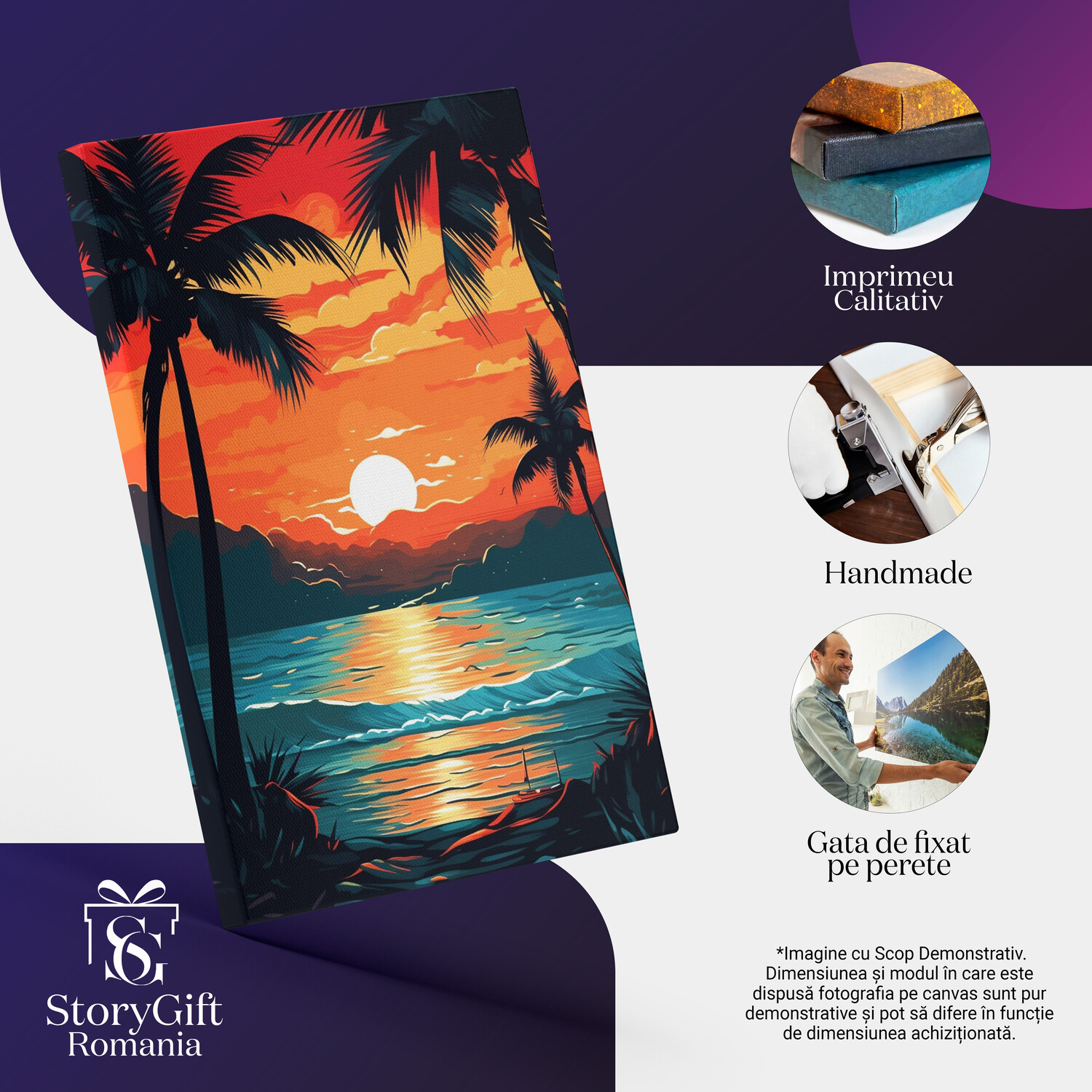 Tablou Canvas: Insula exotica luminata de ultimele raze ale soarelui - apus val apa Pictura Digitala - Tablou Canvas Signature de la StoryGift Romania