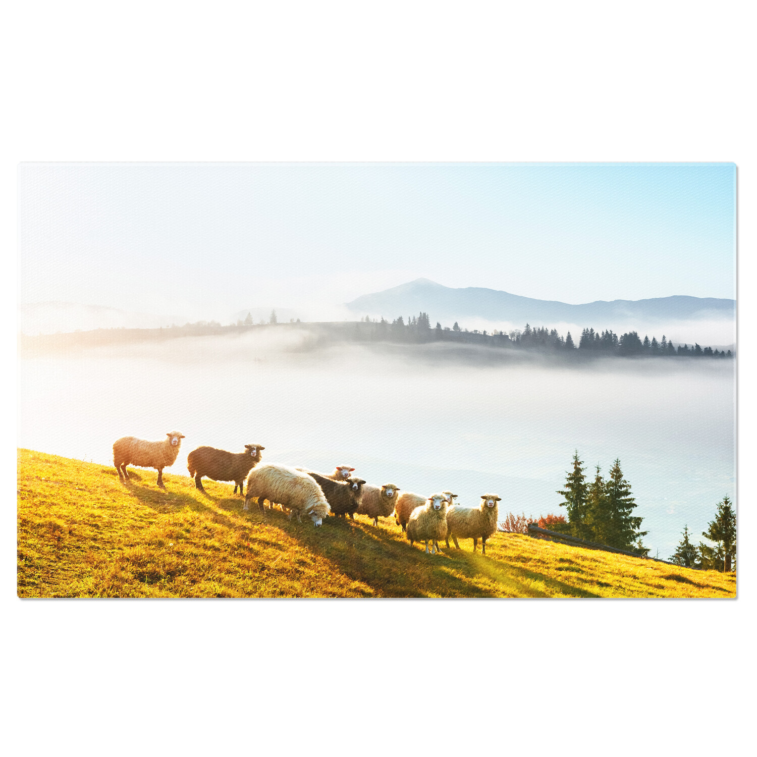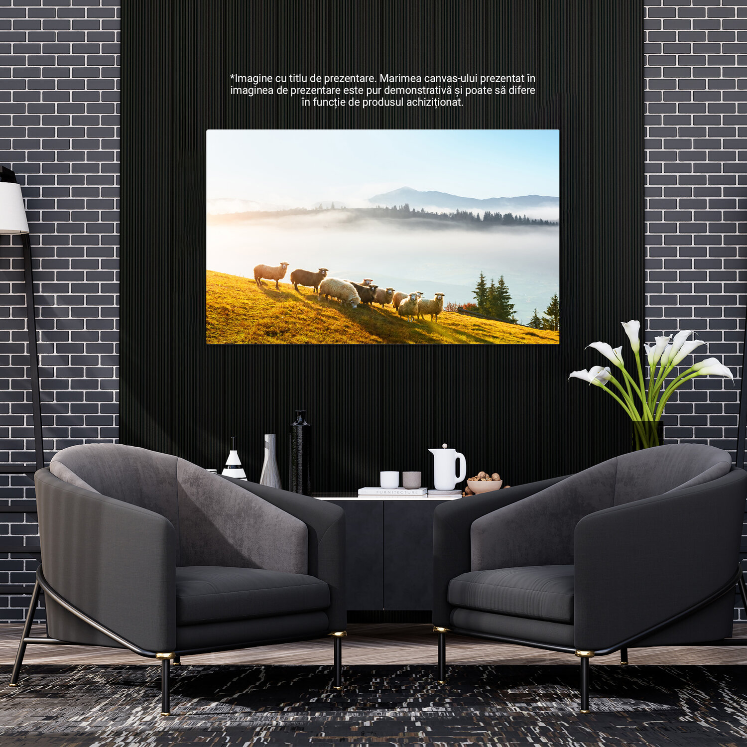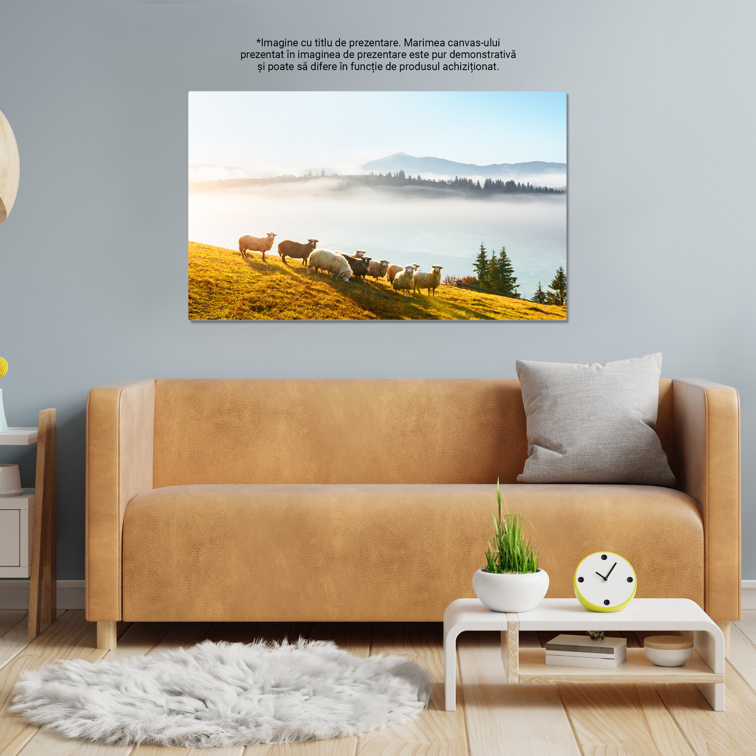Tablou Canvas - Oi pastind pe camp: sheeps, pasture, green, nature - Tablou Canvas Signature de la StoryGift Romania