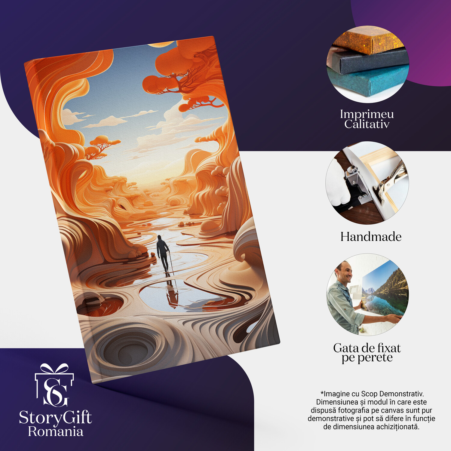 Notă importantă: Precizăm că imaginile de pe site au scop ilustrativ. Detaliile reale ale produsului pot prezenta diferențe minore față de reprezentările digitale, datorită variațiilor de culoare, mărimea tabloului și rezoluția dispozitivelor. Disponibilitatea în diverse dimensiuni ne permite să satisfacem nevoile dvs. specifice; pentru a vă asigura de alegerea potrivită, recomandăm măsurarea atentă a spațiului alocat.