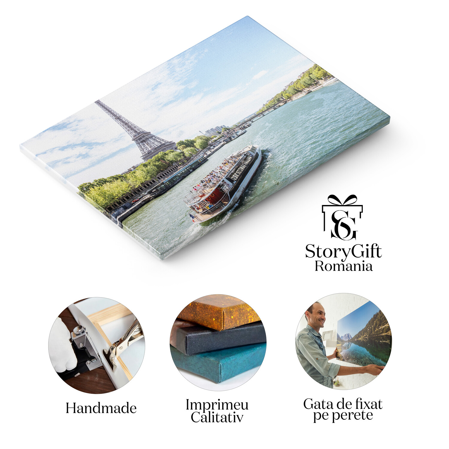 Tablou Canvas Peisaj cu Vedere asupra Parisului, Franta, Turnul Eiffel, Skyline, Arhitectura, Landmark - Tablou Canvas Signature de la StoryGift Romania