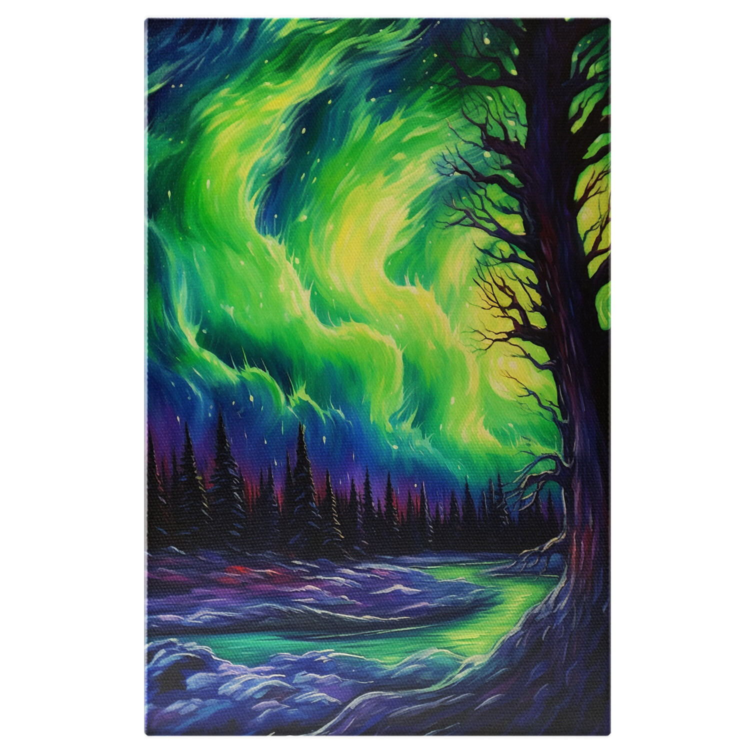 Tablou Canvas: Peisaj dintr-o padure - brazi aurora boreala Pictura Digitala - Tablou Canvas Signature de la StoryGift Romania