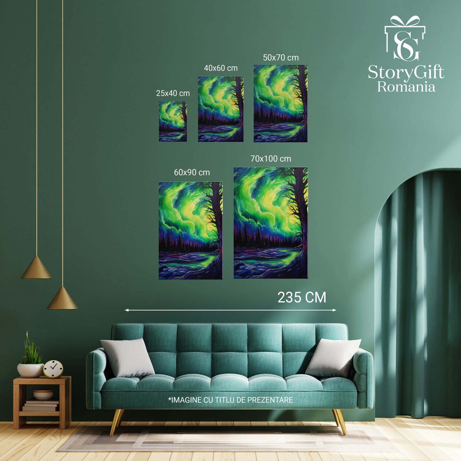 Notă importantă: Precizăm că imaginile de pe site au scop ilustrativ. Detaliile reale ale produsului pot prezenta diferențe minore față de reprezentările digitale, datorită variațiilor de culoare, mărimea tabloului și rezoluția dispozitivelor. Disponibilitatea în diverse dimensiuni ne permite să satisfacem nevoile dvs. specifice; pentru a vă asigura de alegerea potrivită, recomandăm măsurarea atentă a spațiului alocat.
