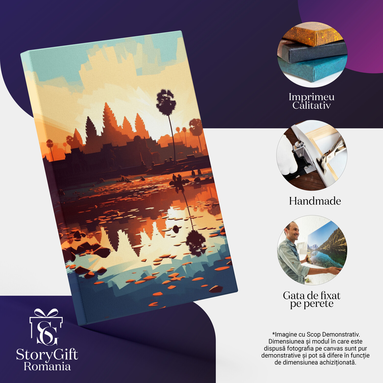 Notă importantă: Precizăm că imaginile de pe site au scop ilustrativ. Detaliile reale ale produsului pot prezenta diferențe minore față de reprezentările digitale, datorită variațiilor de culoare, mărimea tabloului și rezoluția dispozitivelor. Disponibilitatea în diverse dimensiuni ne permite să satisfacem nevoile dvs. specifice; pentru a vă asigura de alegerea potrivită, recomandăm măsurarea atentă a spațiului alocat.