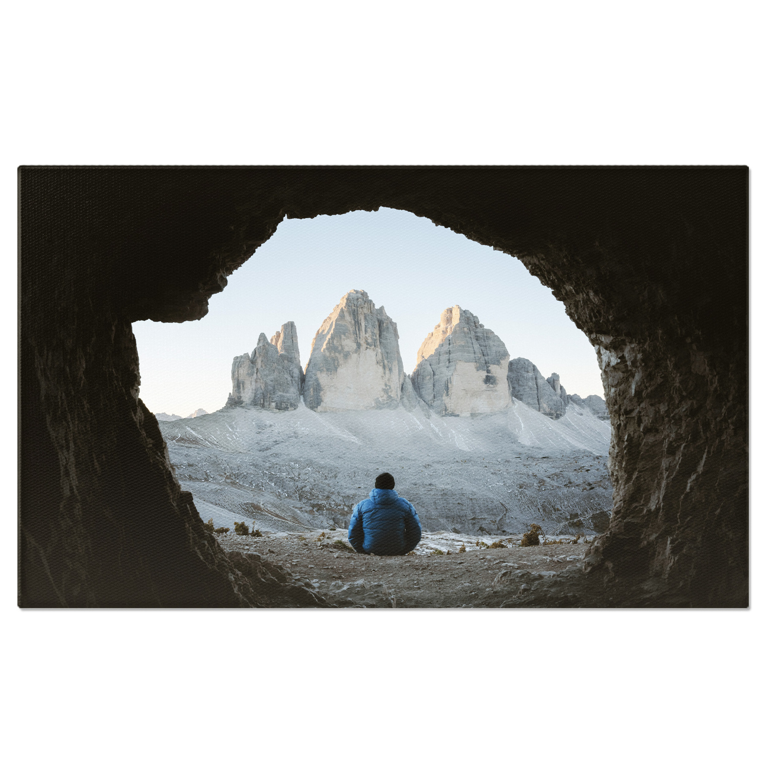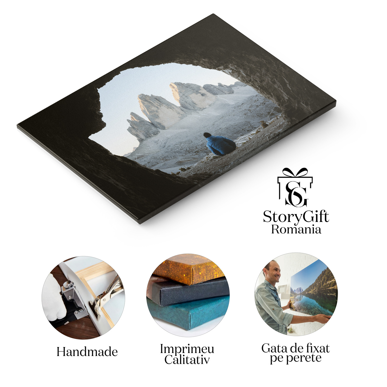 Tablou Canvas Turist Singuratic in Pestera de Munte, Dolomiti, Trei Varfuri, Munti, Peisaj Montan, Exterior - Tablou Canvas Signature de la StoryGift Romania