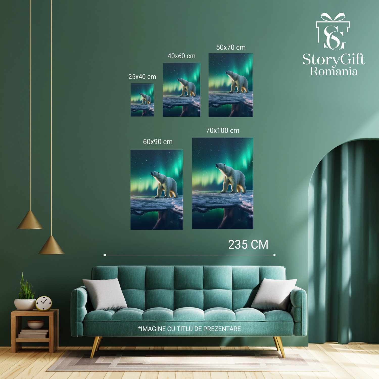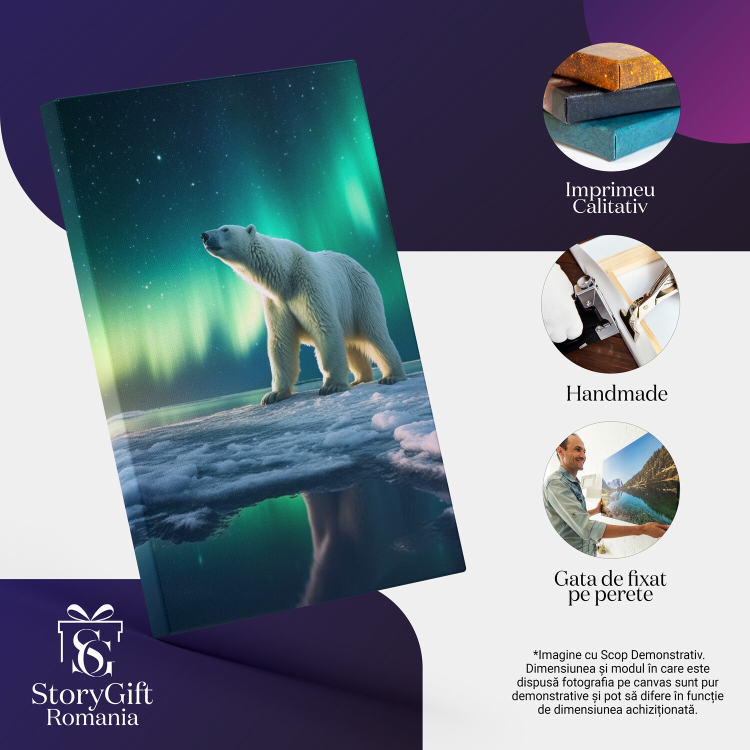 Tablou Canvas: Urs polar la Polul Nord - aurore boreale fenomen spectaculos Pictura Digitala - Tablou Canvas Signature de la StoryGift Romania
