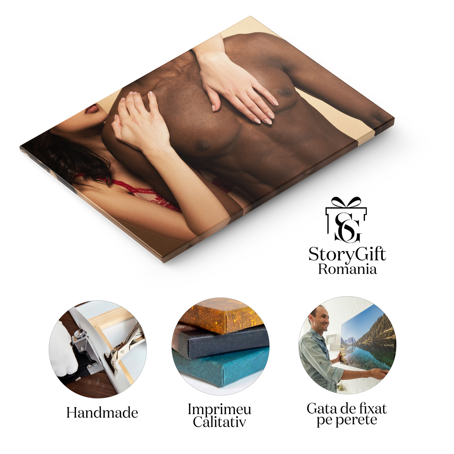 Tablou Canvas Imbratisarea Sensuala a unei Femei cu un Barbat Afro-American cuplu, apropiere, iubit, femeie, izolare, gri - Tablou Canvas Signature de la StoryGift Romania
