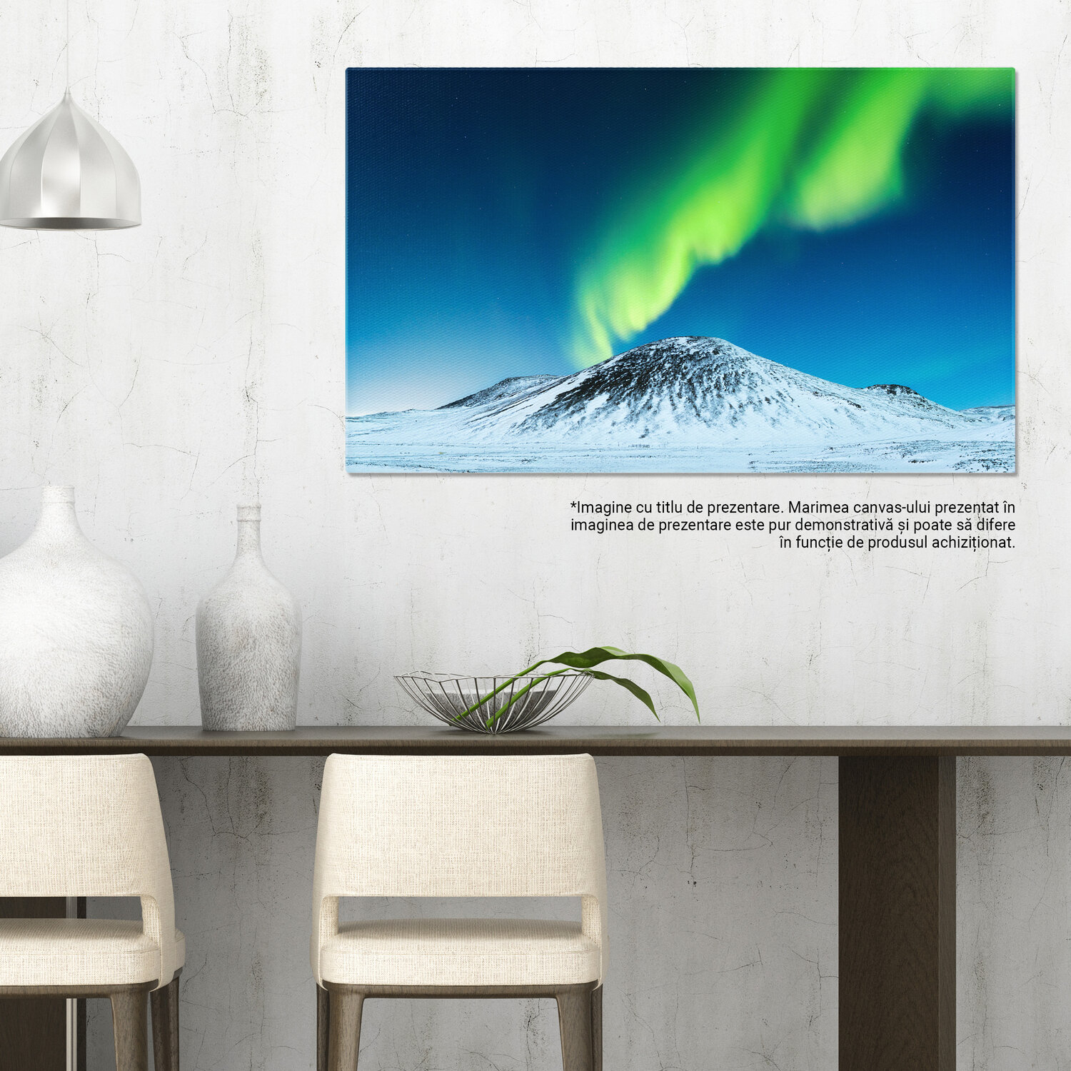 Tablou Canvas Aparitie Aurorii Boreale Peste Munte intr-o Noapte instelata Natura, Peisaj, Aurora Boreala, Noapte, Univers - Tablou Canvas Signature de la StoryGift Romania