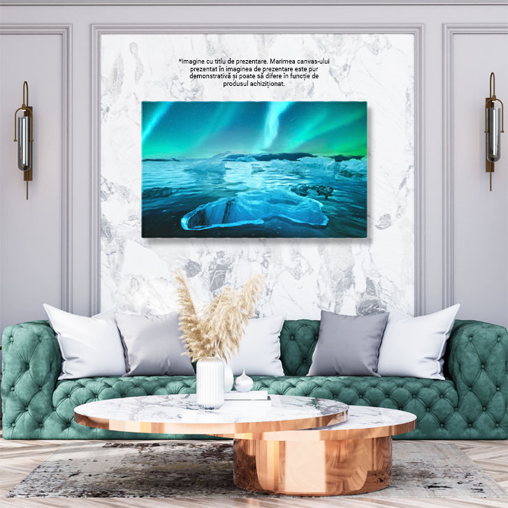 Tablou Canvas Aurore Boreale in Islanda, Luminile Nordului Peste Jokulsarlon, islanda, peisaj, lac, gheata 549 40x25CM