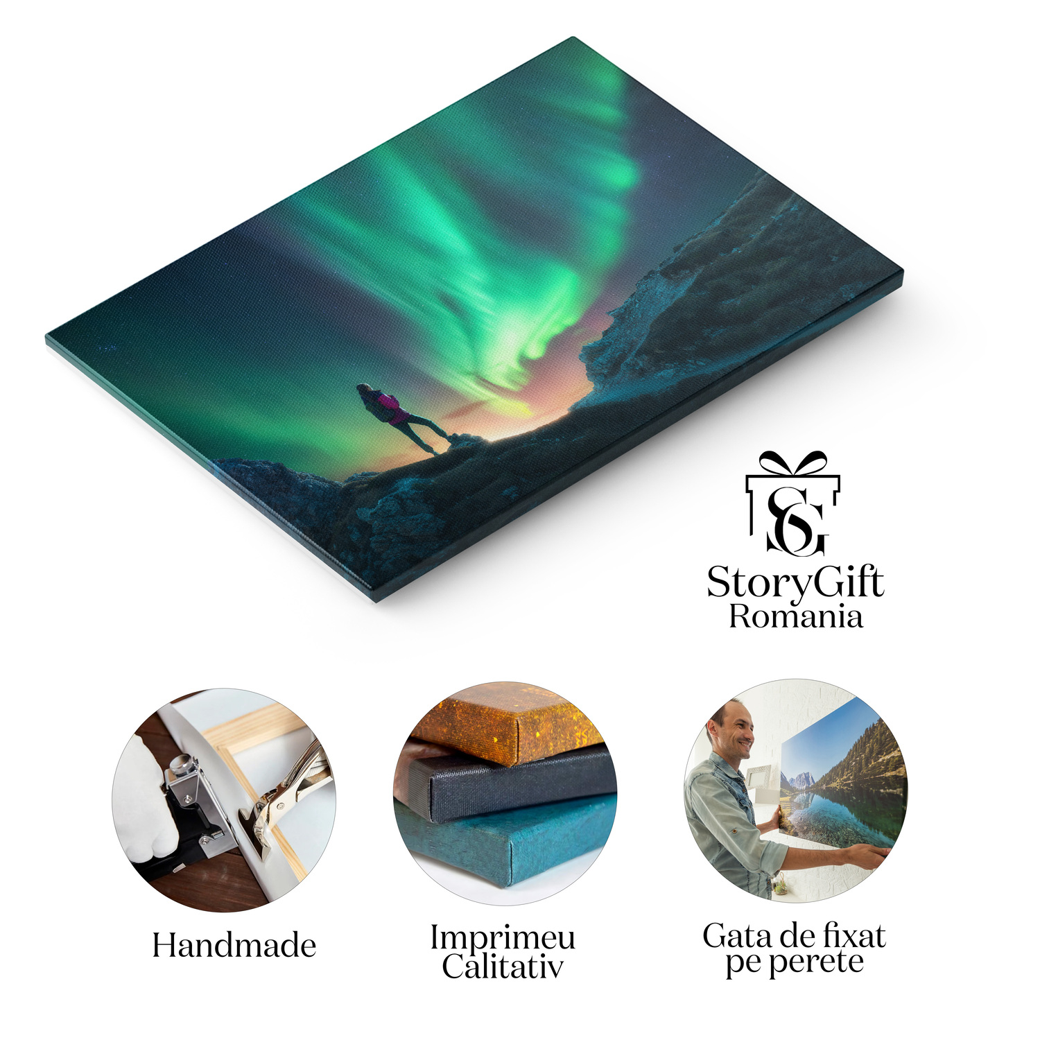 Tablou Canvas cu Femeia si Aurora Boreala - Eleganta Feminina in Lumina Nordului - Tablou Canvas Signature de la StoryGift Romania