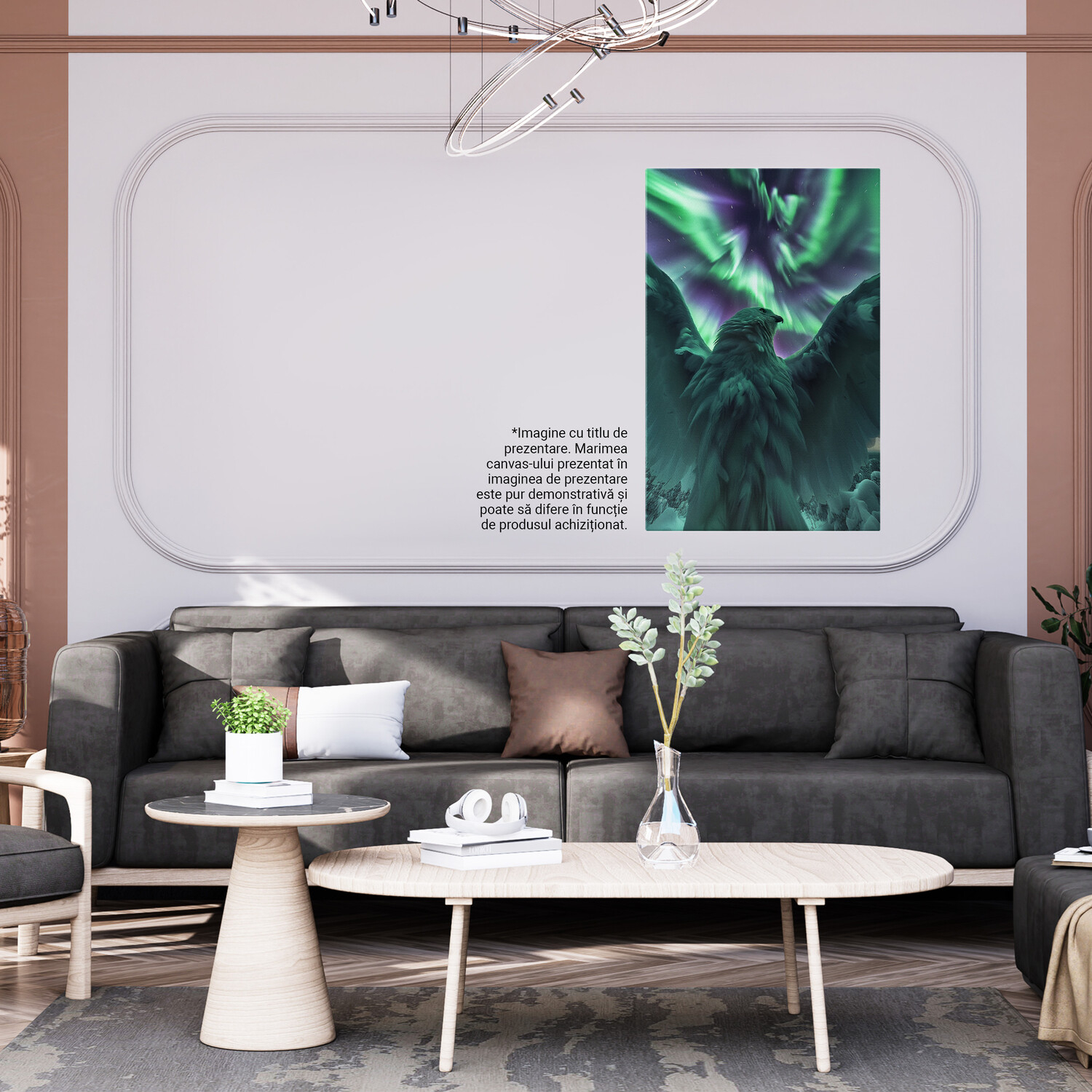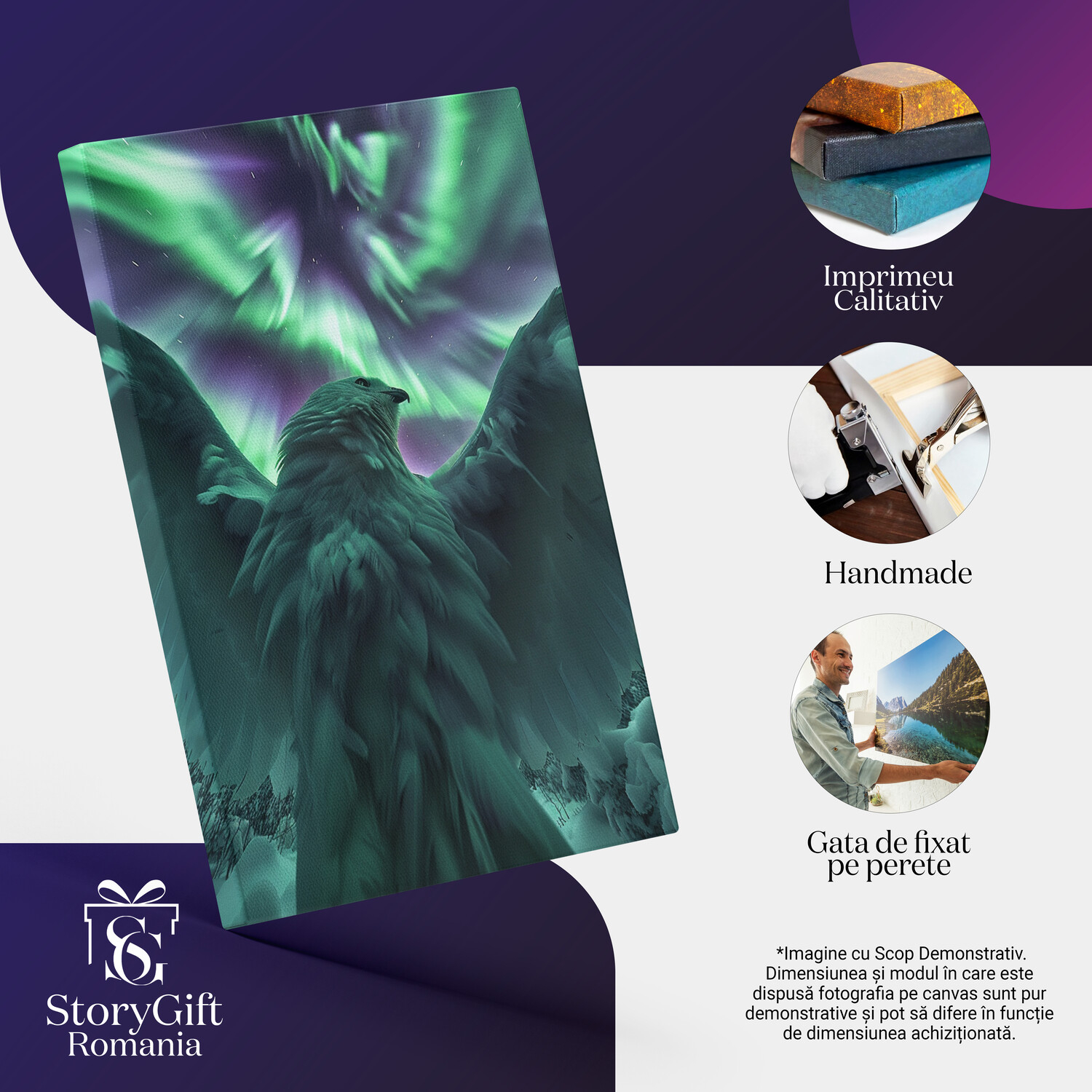 Tablou Canvas: Deschiderea Aripilor Vulturului Catre Cerul Aurorei Boreale in Nuante de Verde si Mov Pictura Digitala - Tablou Canvas Signature de la StoryGift Romania