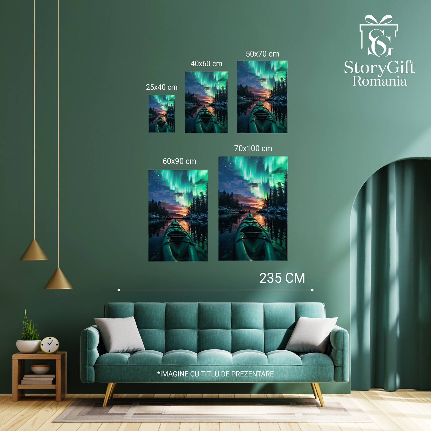Notă importantă: Precizăm că imaginile de pe site au scop ilustrativ. Detaliile reale ale produsului pot prezenta diferențe minore față de reprezentările digitale, datorită variațiilor de culoare, mărimea tabloului și rezoluția dispozitivelor. Disponibilitatea în diverse dimensiuni ne permite să satisfacem nevoile dvs. specifice; pentru a vă asigura de alegerea potrivită, recomandăm măsurarea atentă a spațiului alocat.