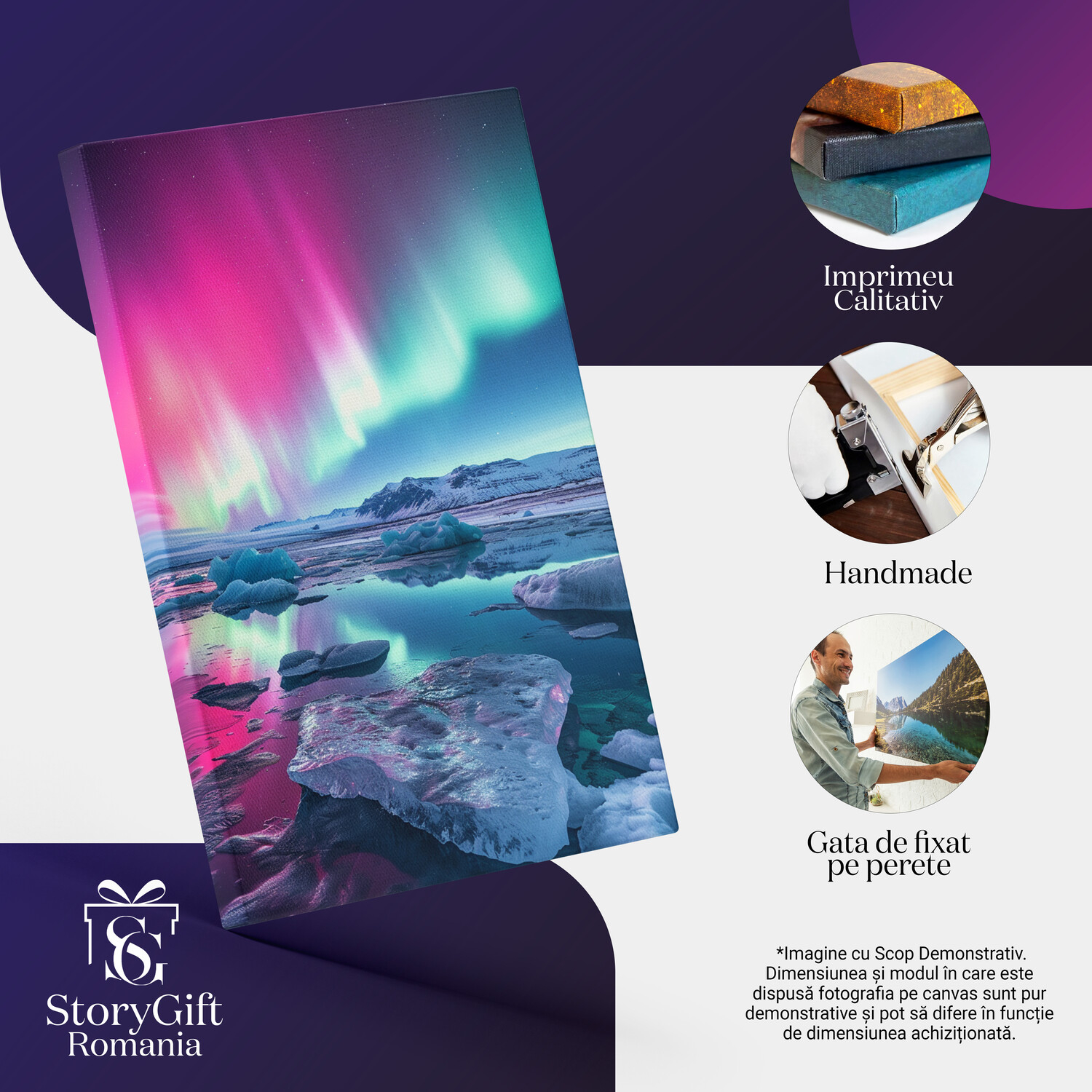 Notă importantă: Precizăm că imaginile de pe site au scop ilustrativ. Detaliile reale ale produsului pot prezenta diferențe minore față de reprezentările digitale, datorită variațiilor de culoare, mărimea tabloului și rezoluția dispozitivelor. Disponibilitatea în diverse dimensiuni ne permite să satisfacem nevoile dvs. specifice; pentru a vă asigura de alegerea potrivită, recomandăm măsurarea atentă a spațiului alocat.