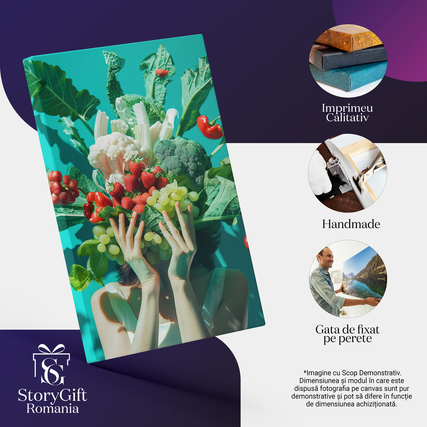 Tablou Canvas Alimentatia Sanatoasa Persoana Feminina tine in Mana Fructe si Legume Proaspete si Sanatoase , Pictura Digitala - Tablou Canvas Signature de la StoryGift Romania