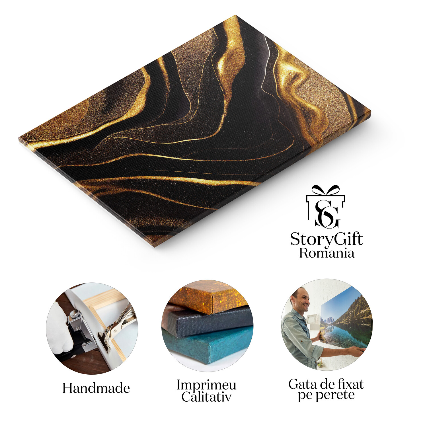 Tablou Canvas - arta abstracta imbinare culori auriu si negru marmura- Tablou Canvas Signature de la StoryGift Romania