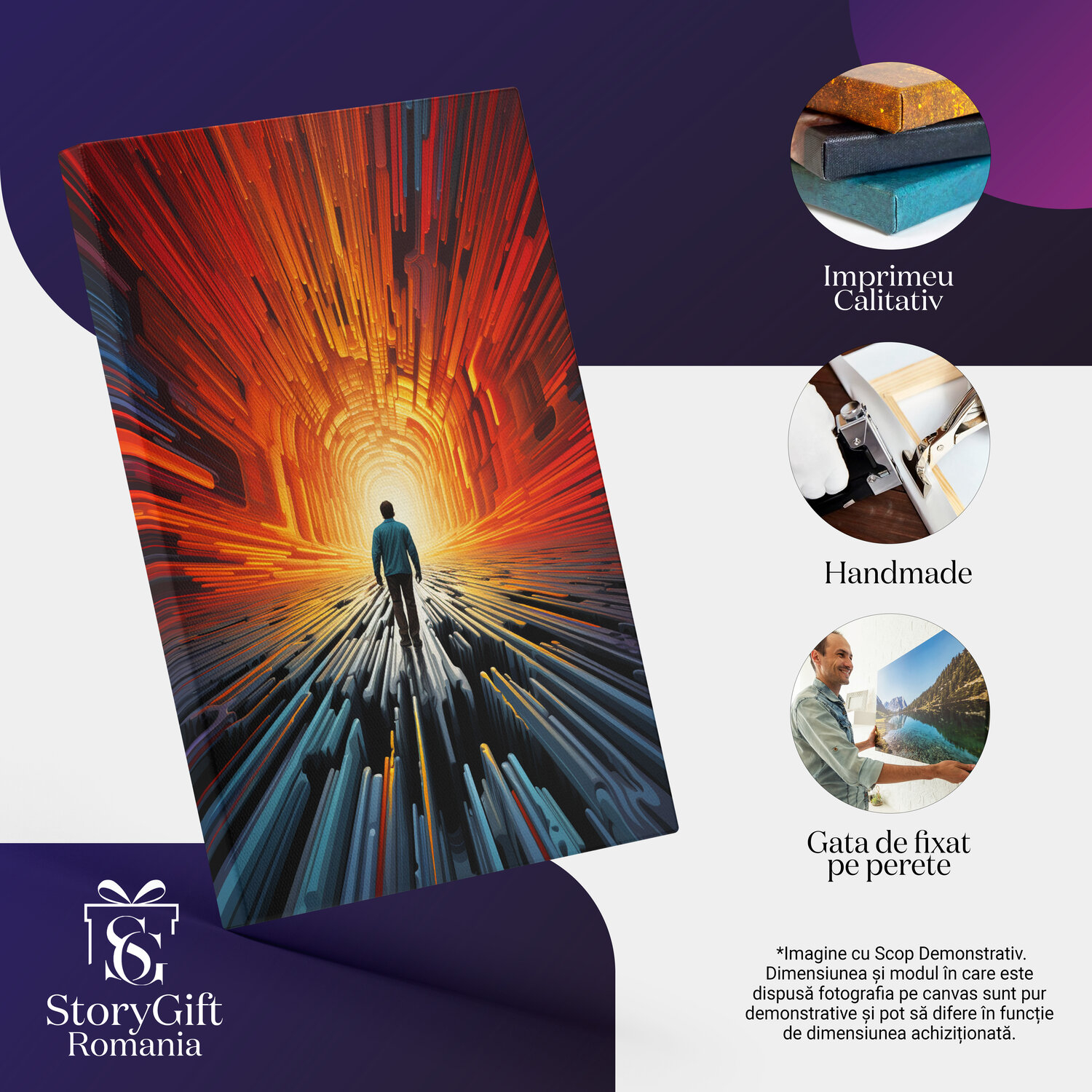 Notă importantă: Precizăm că imaginile de pe site au scop ilustrativ. Detaliile reale ale produsului pot prezenta diferențe minore față de reprezentările digitale, datorită variațiilor de culoare, mărimea tabloului și rezoluția dispozitivelor. Disponibilitatea în diverse dimensiuni ne permite să satisfacem nevoile dvs. specifice; pentru a vă asigura de alegerea potrivită, recomandăm măsurarea atentă a spațiului alocat.
