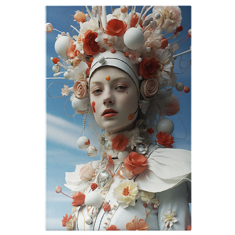 Tablou Canvas: O fata draguta cu multe flori pe cap si pe haine - eleganta Pictura Digitala 40x25CM