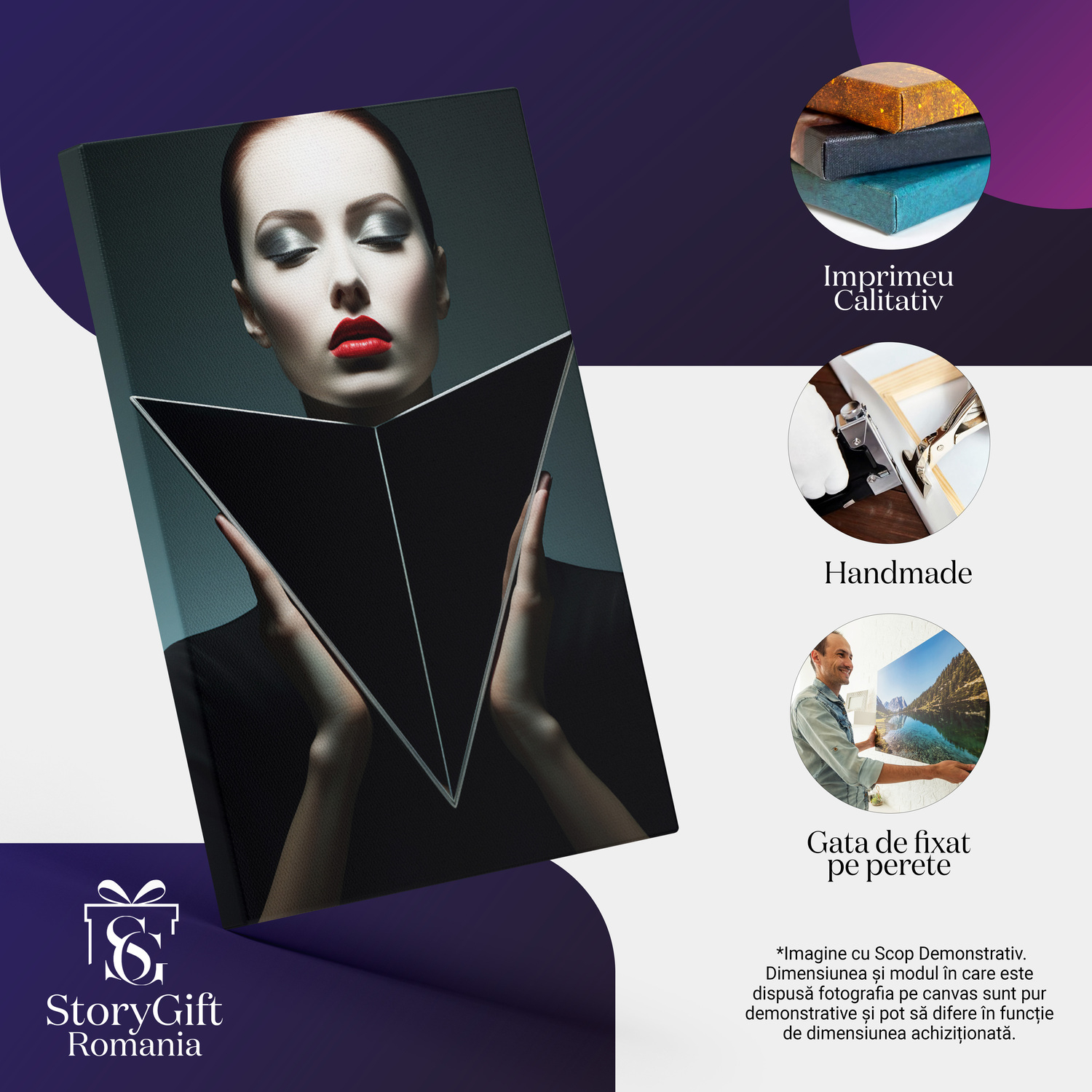 Notă importantă: Precizăm că imaginile de pe site au scop ilustrativ. Detaliile reale ale produsului pot prezenta diferențe minore față de reprezentările digitale, datorită variațiilor de culoare, mărimea tabloului și rezoluția dispozitivelor. Disponibilitatea în diverse dimensiuni ne permite să satisfacem nevoile dvs. specifice; pentru a vă asigura de alegerea potrivită, recomandăm măsurarea atentă a spațiului alocat.