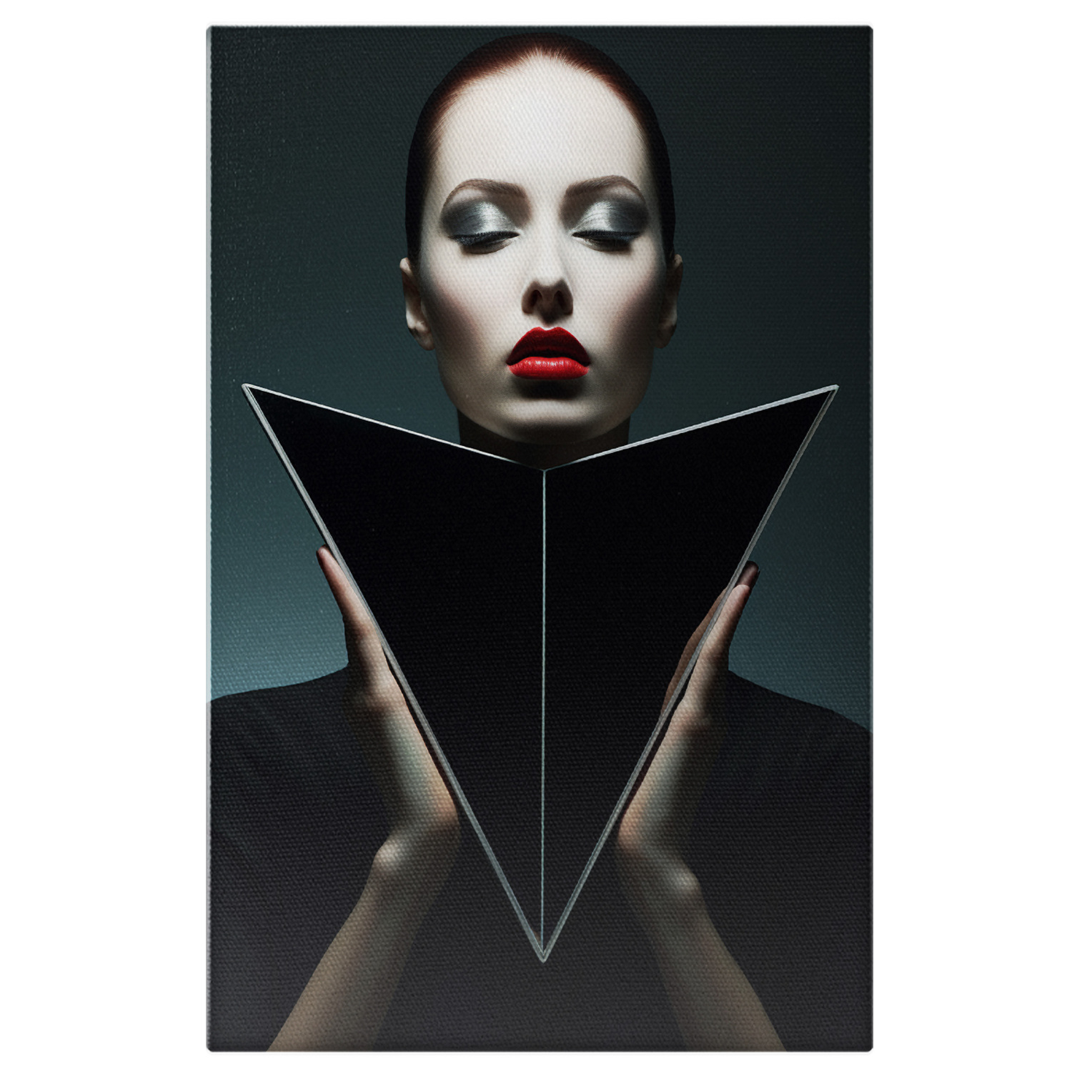 Tablou Canvas: Femeie cu Chipul Alb si Buze Rosii cu Ochii Machiati, Poza Artistica Feminina Pictura Digitala - Tablou Canvas Signature de la StoryGift Romania
