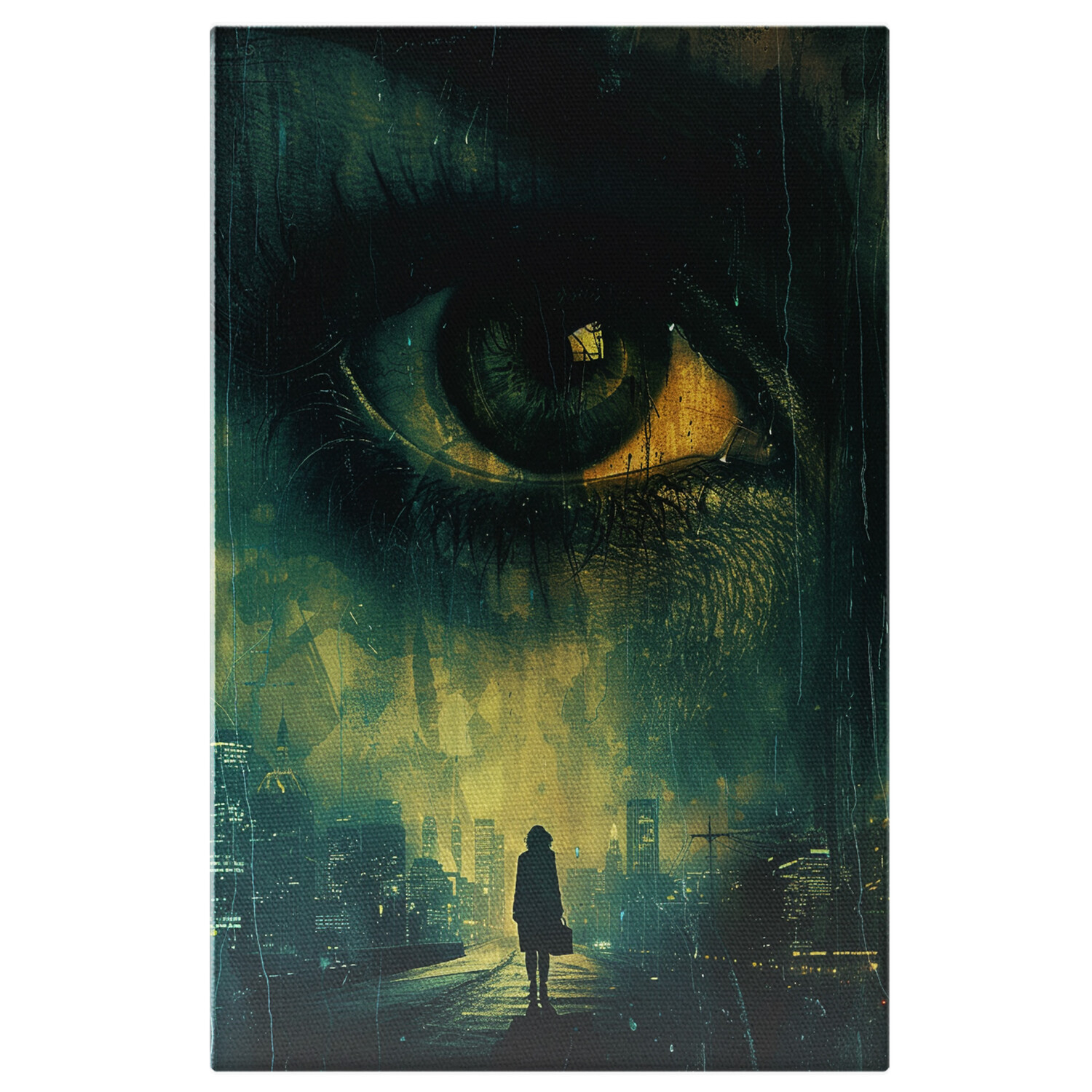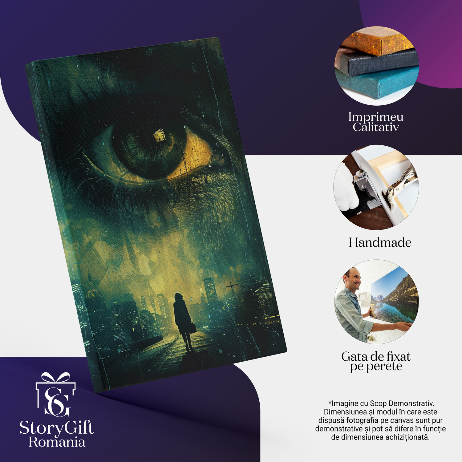 Tablou Canvas Femeie cu Geanta in Mana pe un Pod cu Blocuri Imprejur care Priveste catre Ochiul Trist , Pictura Digitala - Tablou Canvas Signature de la StoryGift Romania