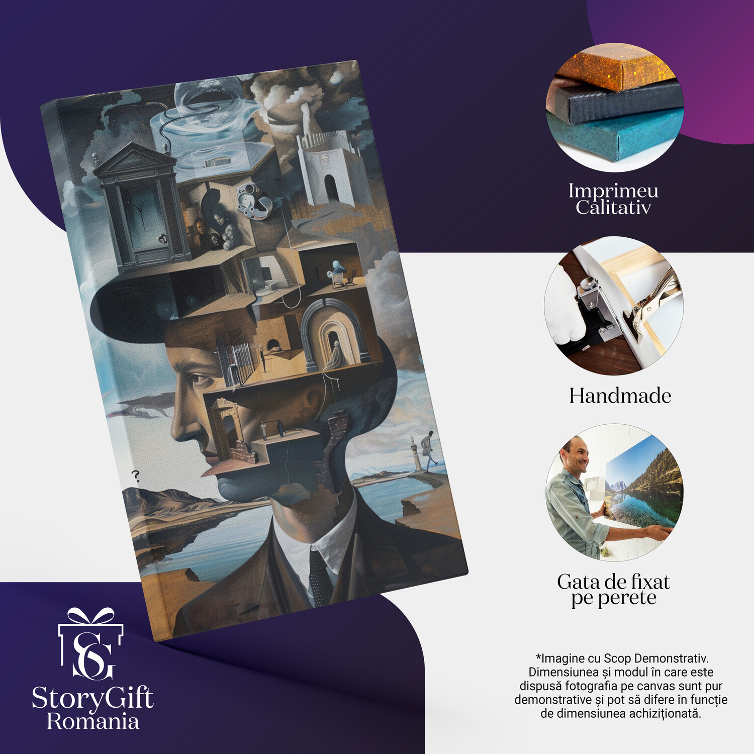 Tablou Canvas Figura Masculina in Camasa cu Cravata si Costum cu o Imagine in Cap despre Amintiri , Pictura Digitala - Tablou Canvas Signature de la StoryGift Romania