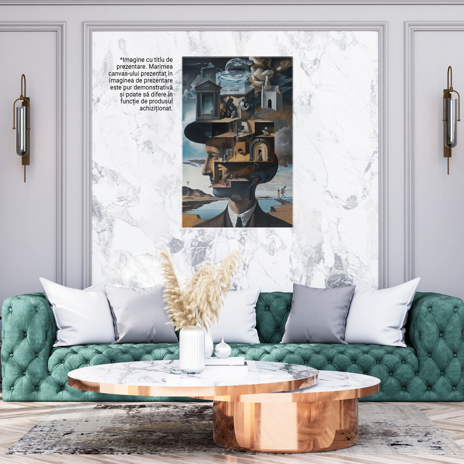 Tablou Canvas Figura Masculina in Camasa cu Cravata si Costum cu o Imagine in Cap despre Amintiri , Pictura Digitala 90x60CM