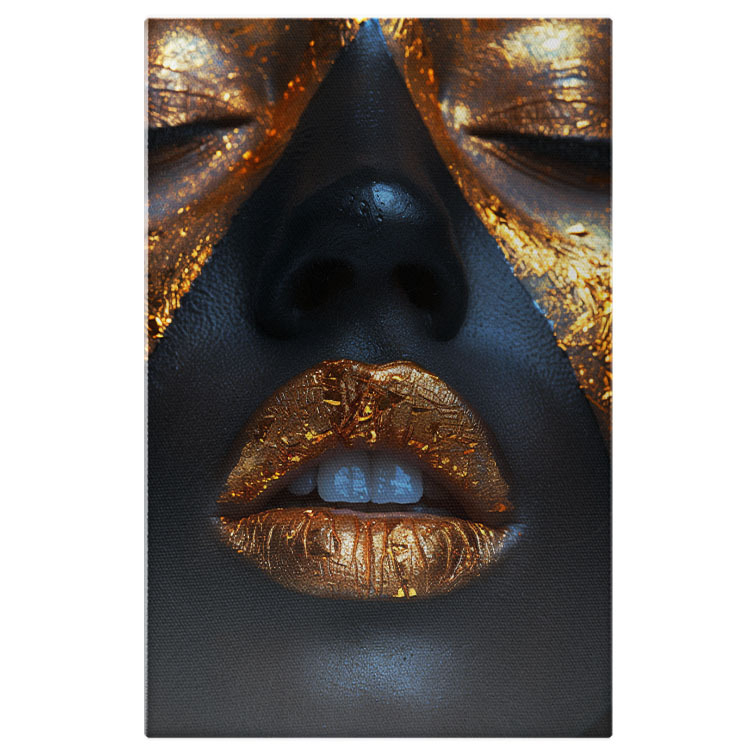 Tablou Canvas Reflexiile Seducției Ochi Închiși și Buze Aurii Efect Strălucitor Glam , Pictura Digitala 40x25CM