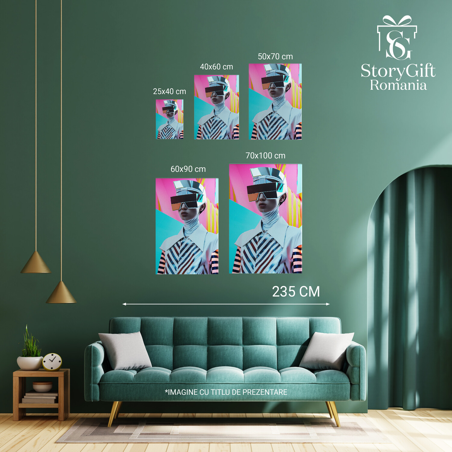 Notă importantă: Precizăm că imaginile de pe site au scop ilustrativ. Detaliile reale ale produsului pot prezenta diferențe minore față de reprezentările digitale, datorită variațiilor de culoare, mărimea tabloului și rezoluția dispozitivelor. Disponibilitatea în diverse dimensiuni ne permite să satisfacem nevoile dvs. specifice; pentru a vă asigura de alegerea potrivită, recomandăm măsurarea atentă a spațiului alocat.
